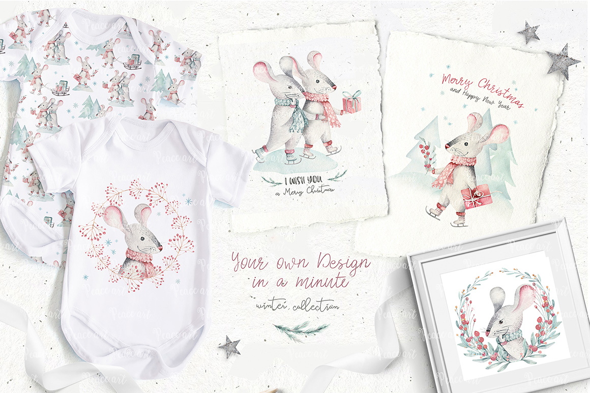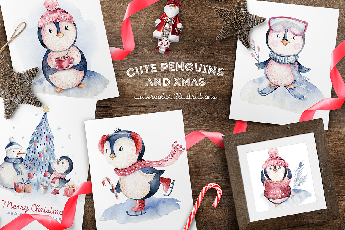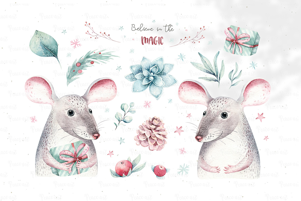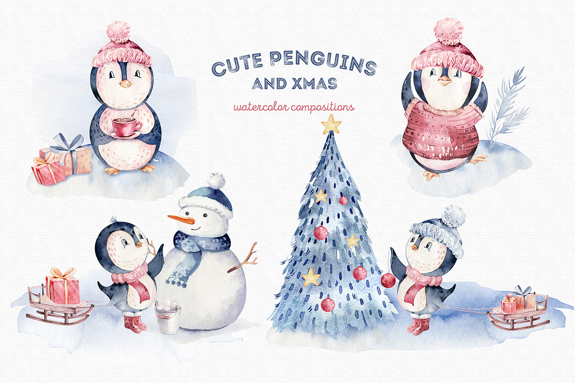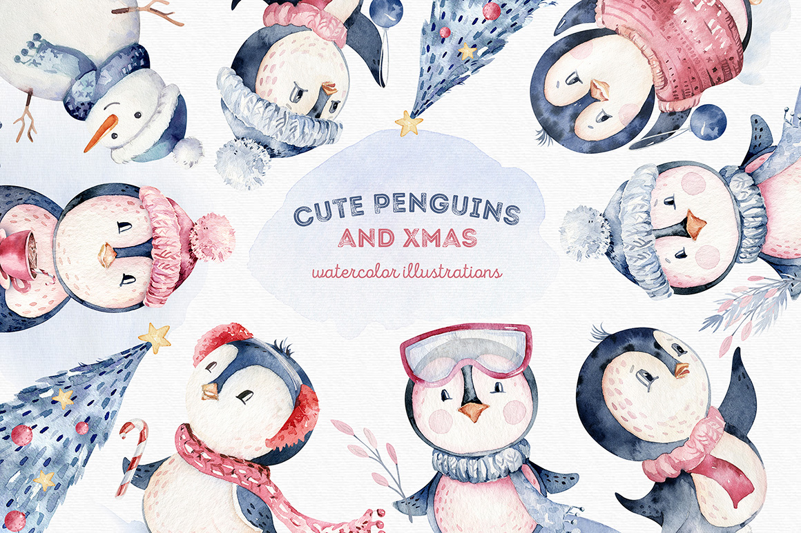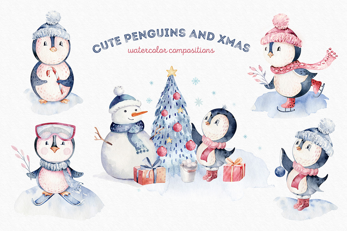 - Creative & decorative watercolor illustrations with Christmas & New Year theme – 4 great sets in 1 bundle!