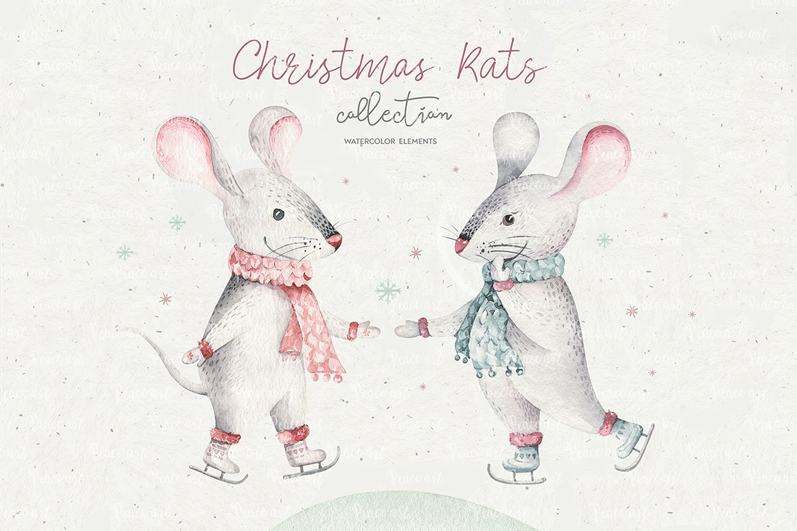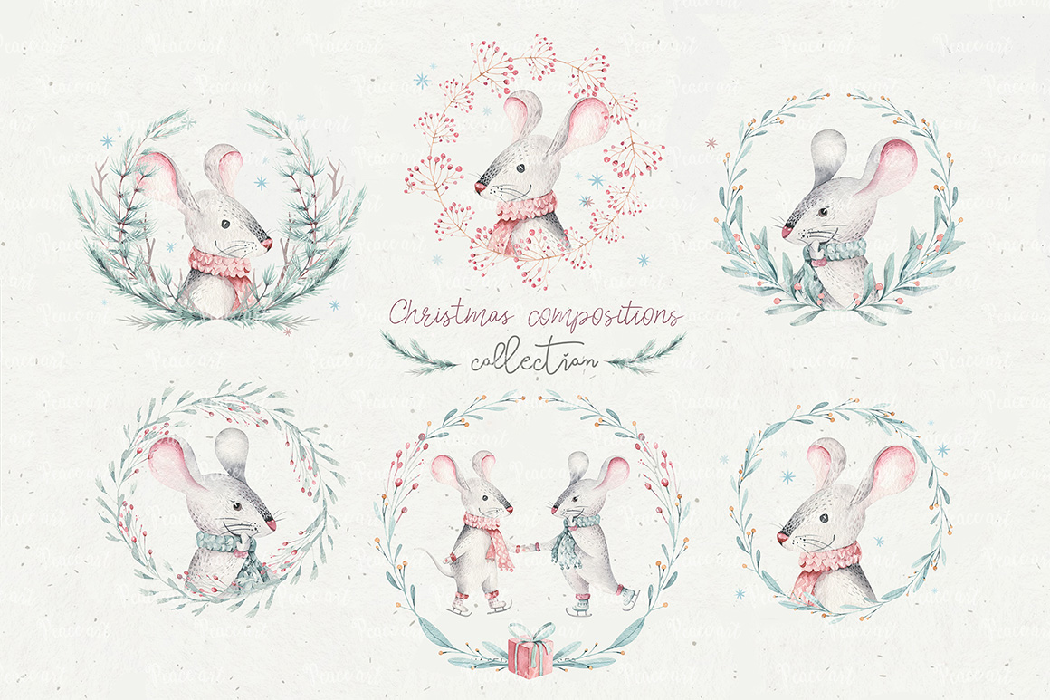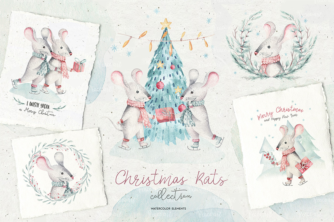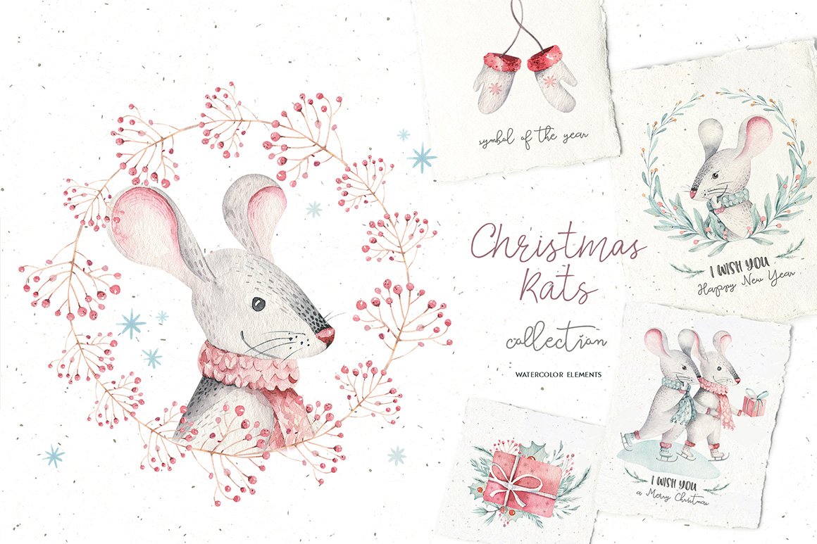 - 6 rats into wreaths, see preview (300 dpi, PNG, transparent background)