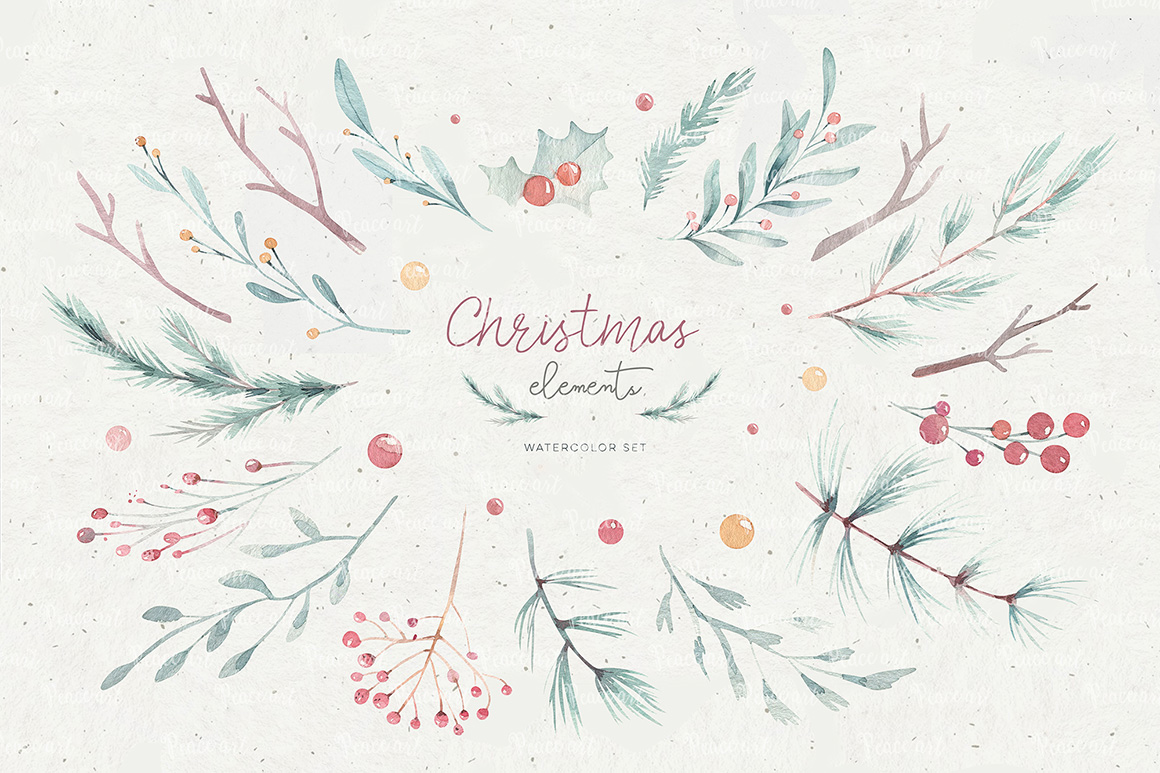If you are looking for Christmas & New Year’s Eve style watercolor illustrations or graphic ellements then you are at the right place because here you will get a great collection of 4 amazing illustration sets for your new festive projects. These graphics are in hi-res PNG or JPG formats so all are great for your new web design or any print design projects. Enjoy 😉