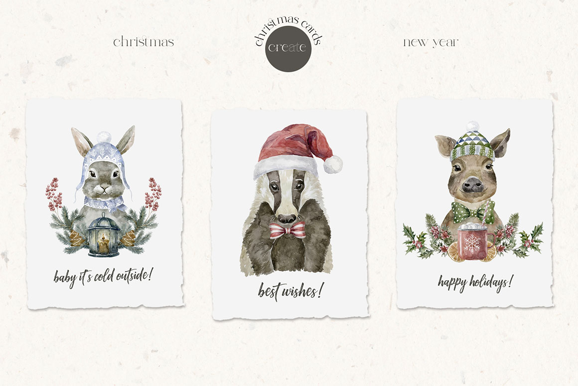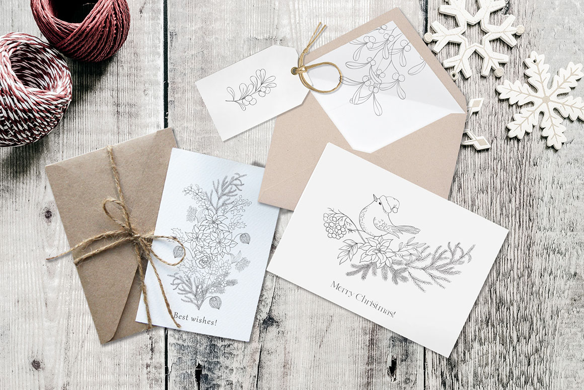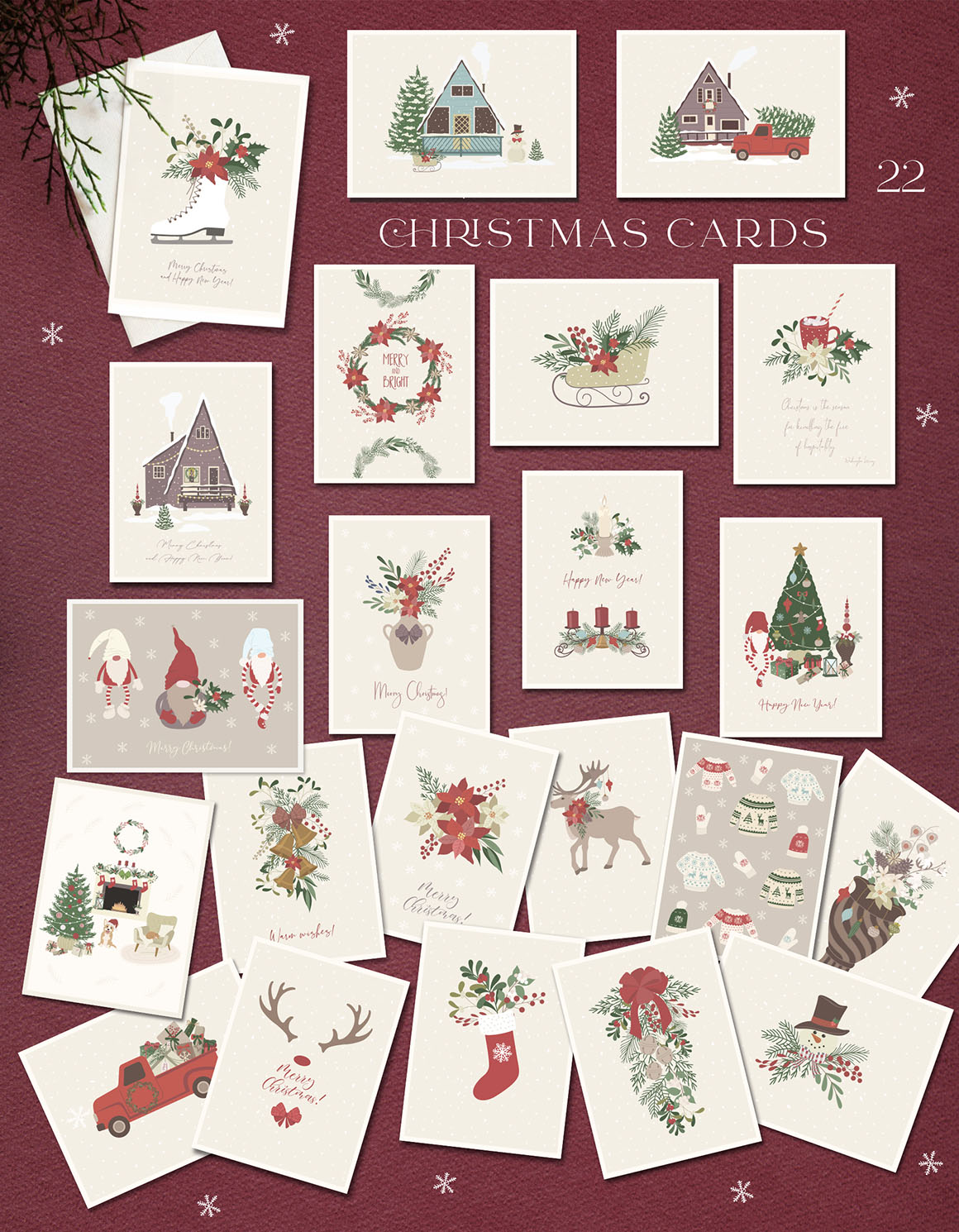 - 22 Christmas Cards, as AI, EPS, separated PNG, (~4500×6500 px, 300dpi) JPEG (5000×5000 px, 300dpi) files