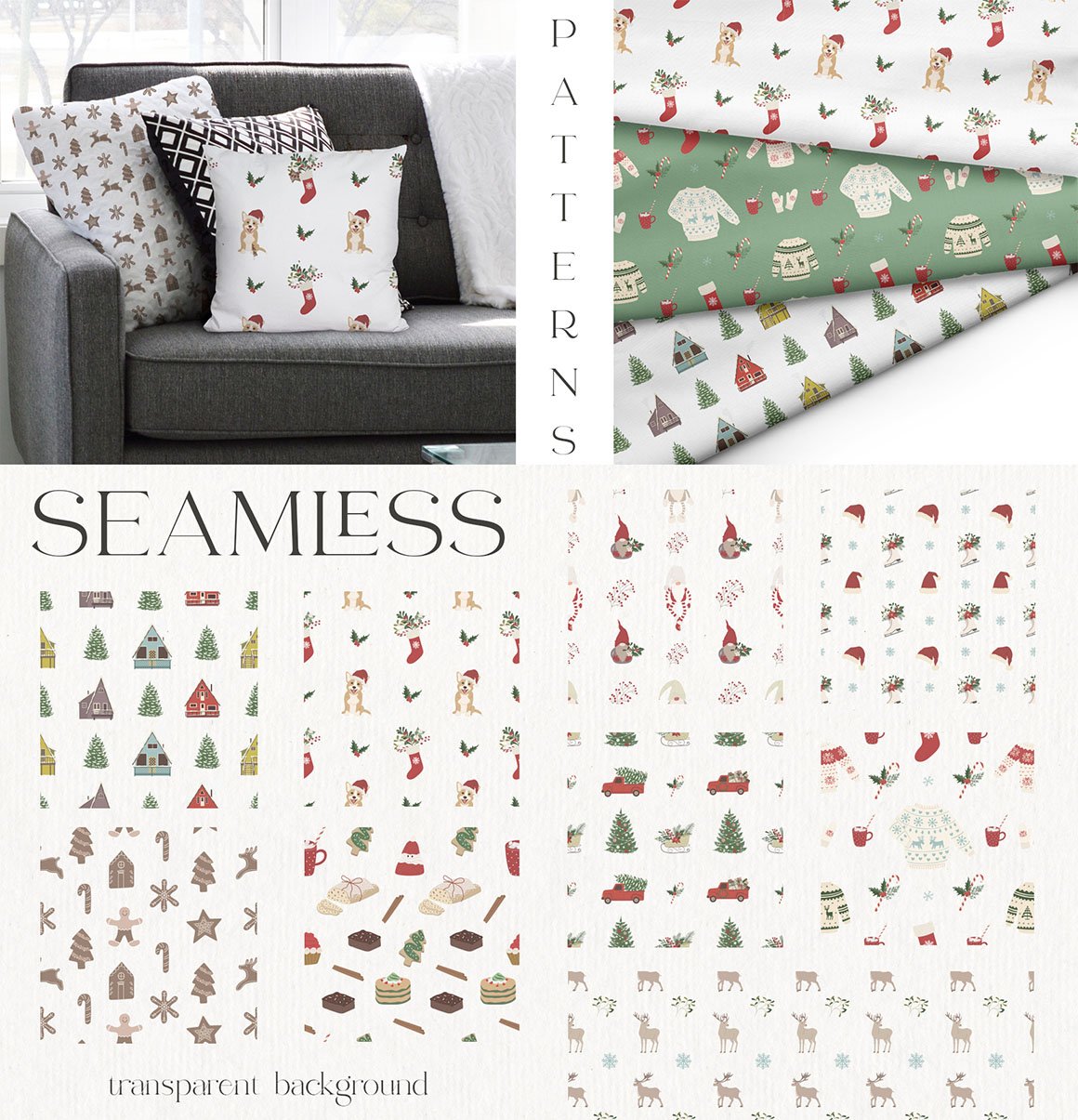 - 4 Seamless patterns, as AI, EPS, separated PNG (5000×5000 px, 300dpi) files