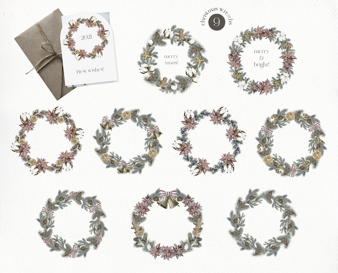 - 9 Wreaths, as separated PNG (~5000×5000 px, 300dpi)