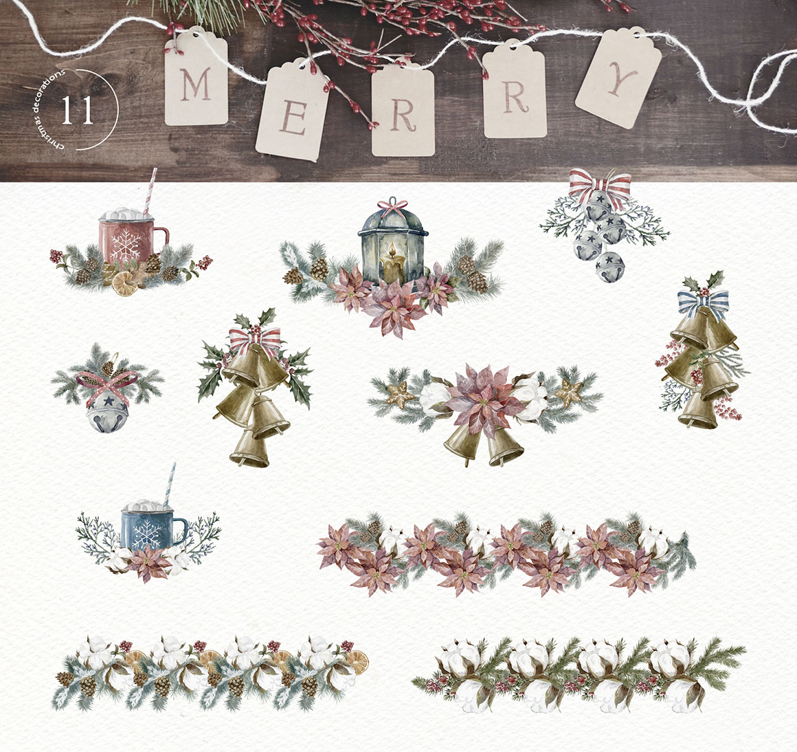 - 11 Christmas deco, as separated PNG (~2000×5000 px, 300dpi)