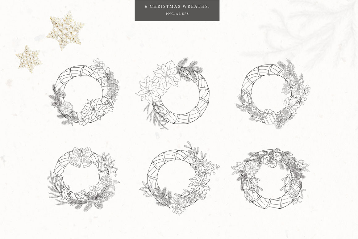 - 15 Wreaths, as AI, EPS, separated PNG (5000×5000 px, 300dpi) files