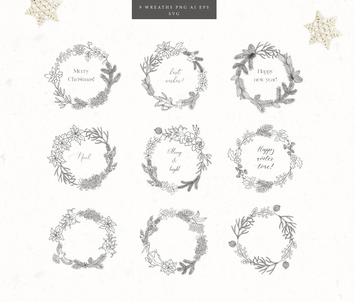 - 9 Wreaths, as AI, EPS, SVG separated PNG (5000×5000 px, 300dpi) file