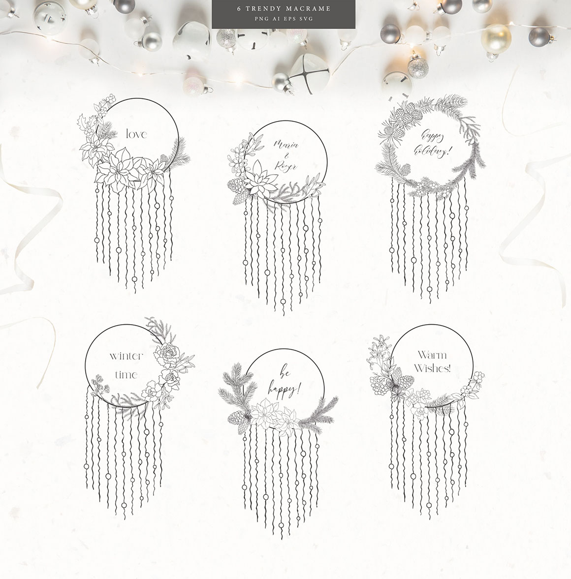 - 6 Macrame frames, as AI, EPS, SVG separated PNG (5000×5000 px, 300dpi) file