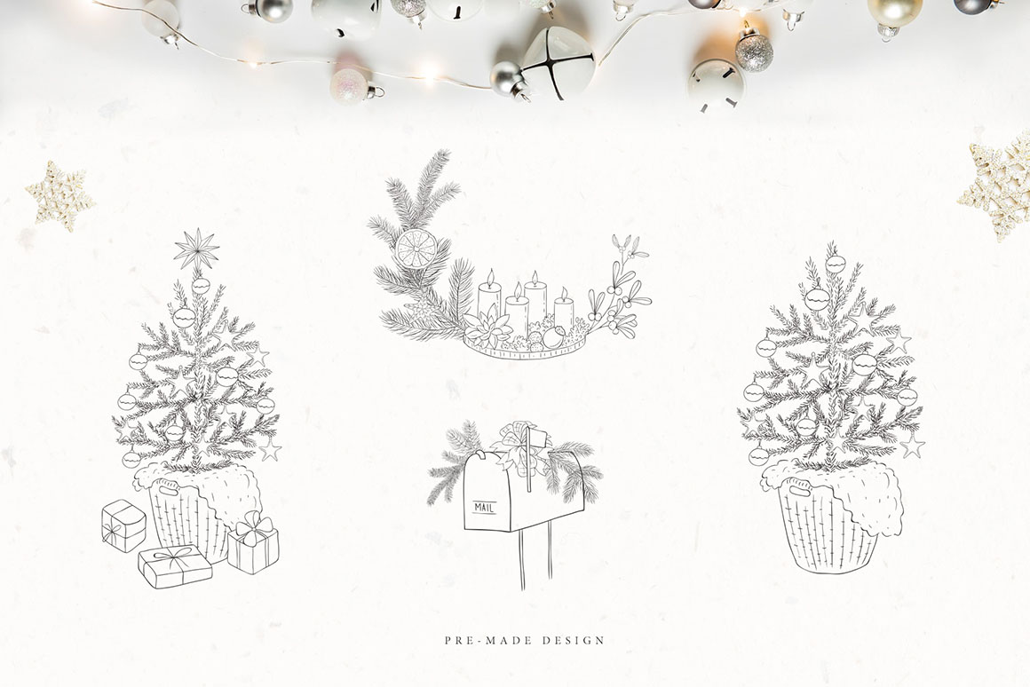 Need some winter, Christmas & linear style illustration or graphic set for your new web or print project? Whatever the case, this amazing and HUGE illustration or artistic graphics bundle with lot of hand drawn illustrations, graphic elements, compositions & patterns is great source for all print or branding designers. You’ll find 4 big illustration sets in this bundle! These graphics are in hi-res PNG or JPG image format so all are great for your new web design or any print design projects. Enjoy 😉
