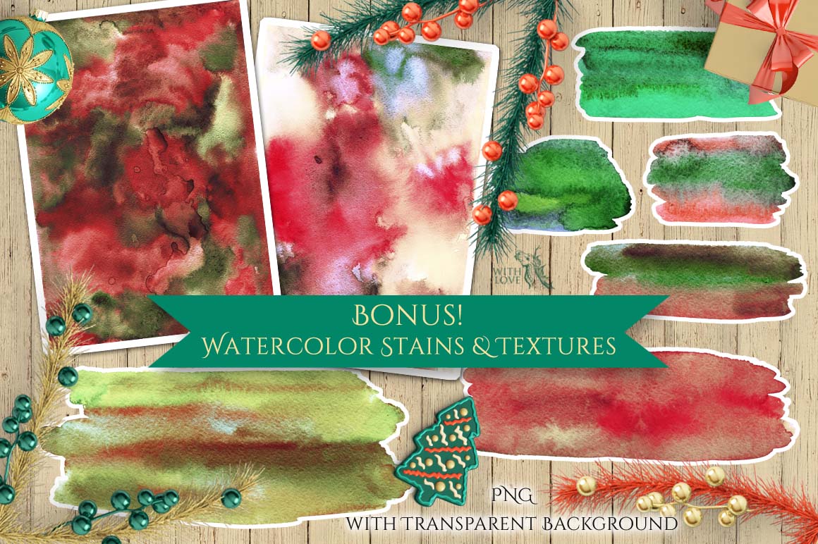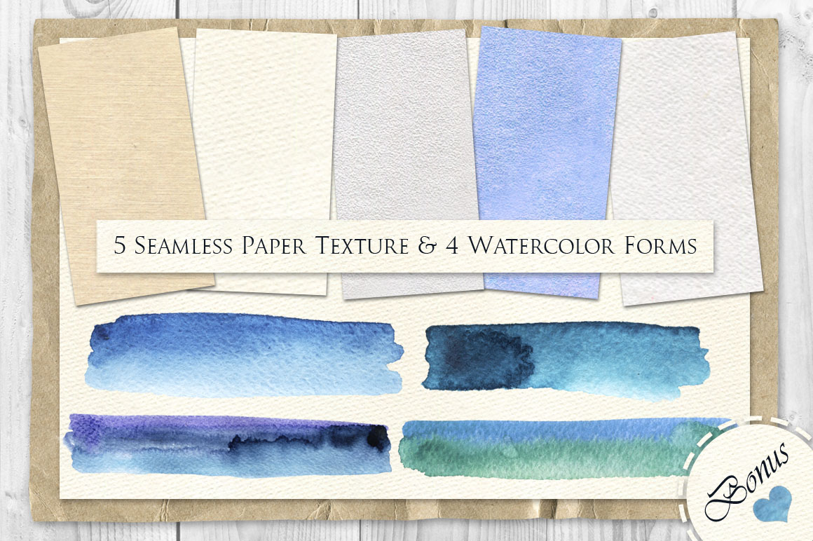 Вonus: 5 seamless texture (watercolor paper) and 4 watercolor stains for your creativity. 🙂