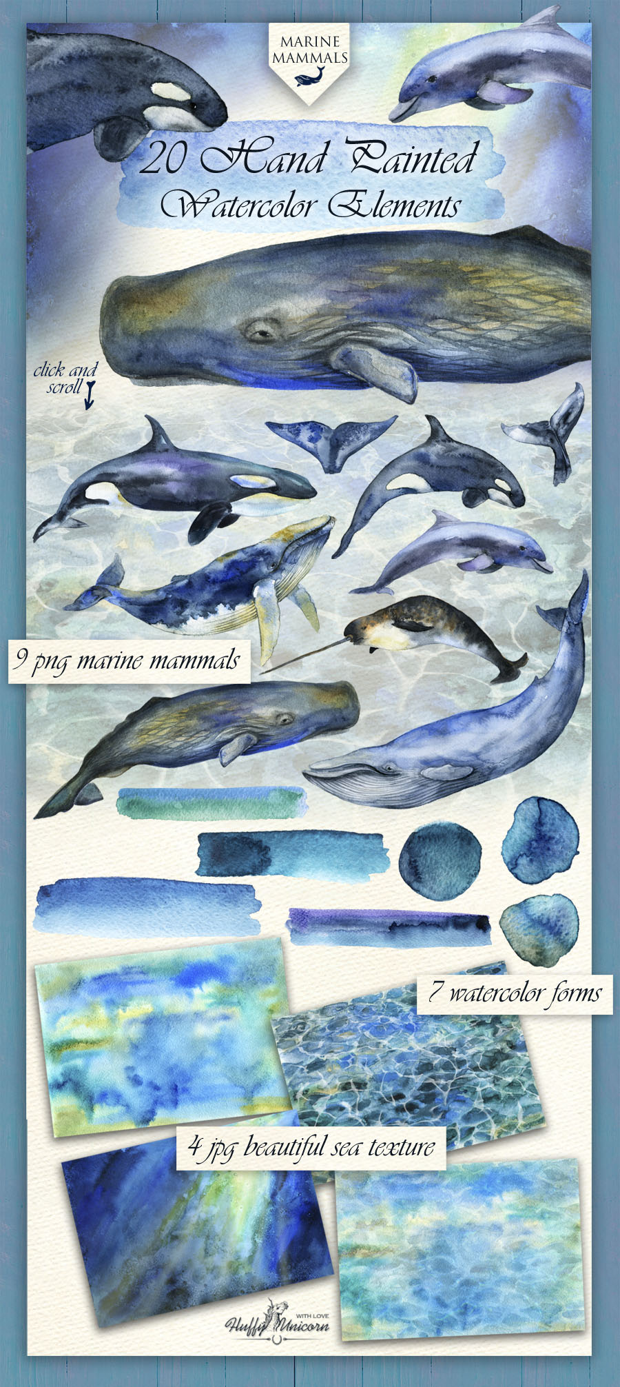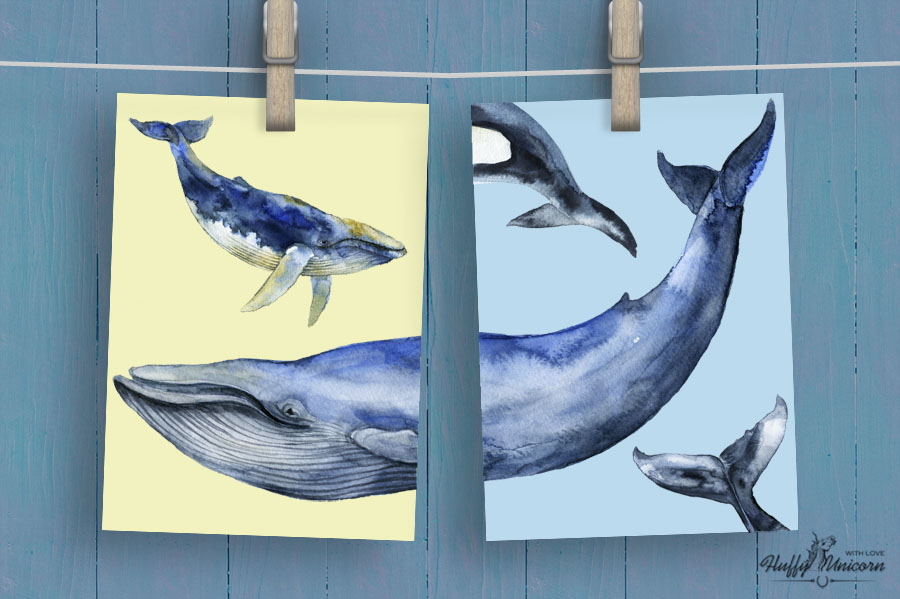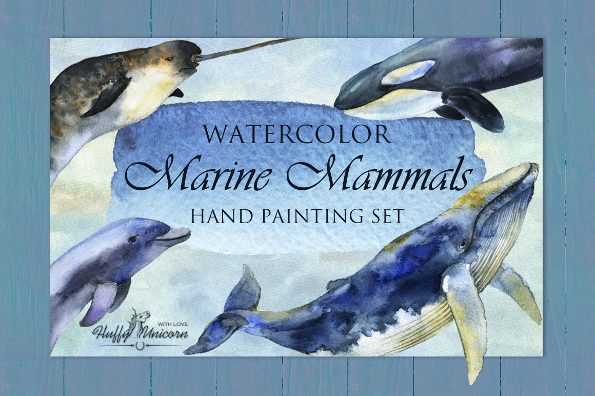 6. Marine Mammals Watercolor Set from Fluffy Unicorn