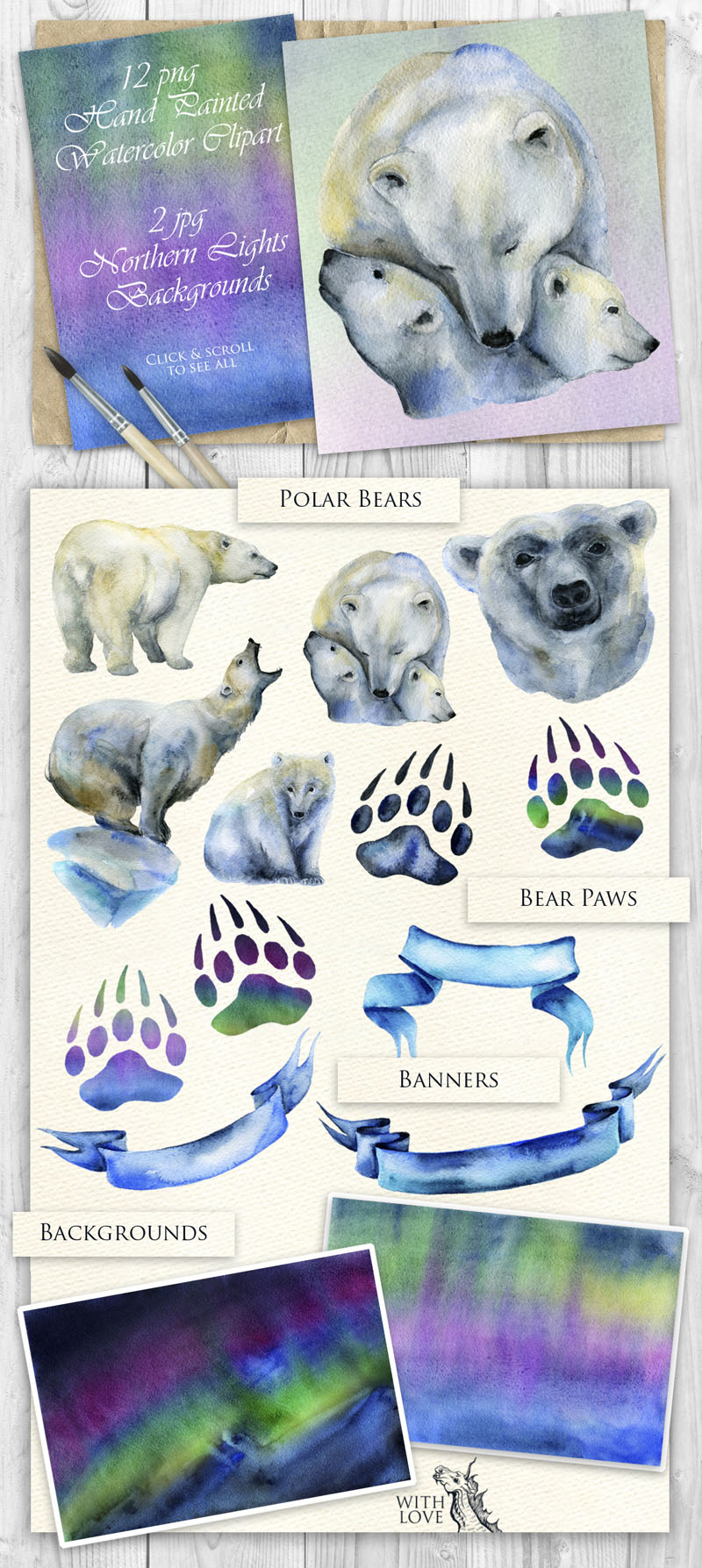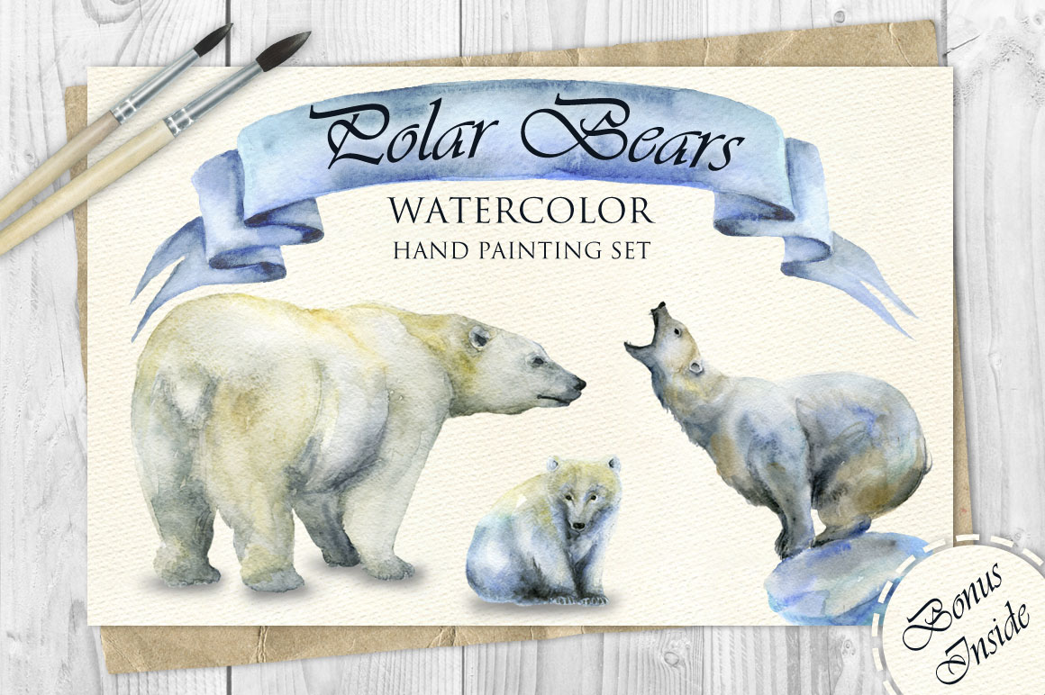 5. Polar Bears Watercolor Set from Fluffy Unicorn