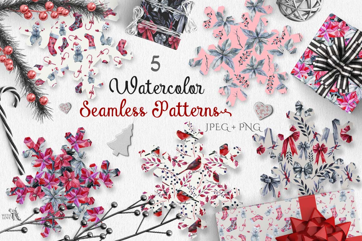 - 5 JPEG (300dpi) seamless patterns + 5 PNG