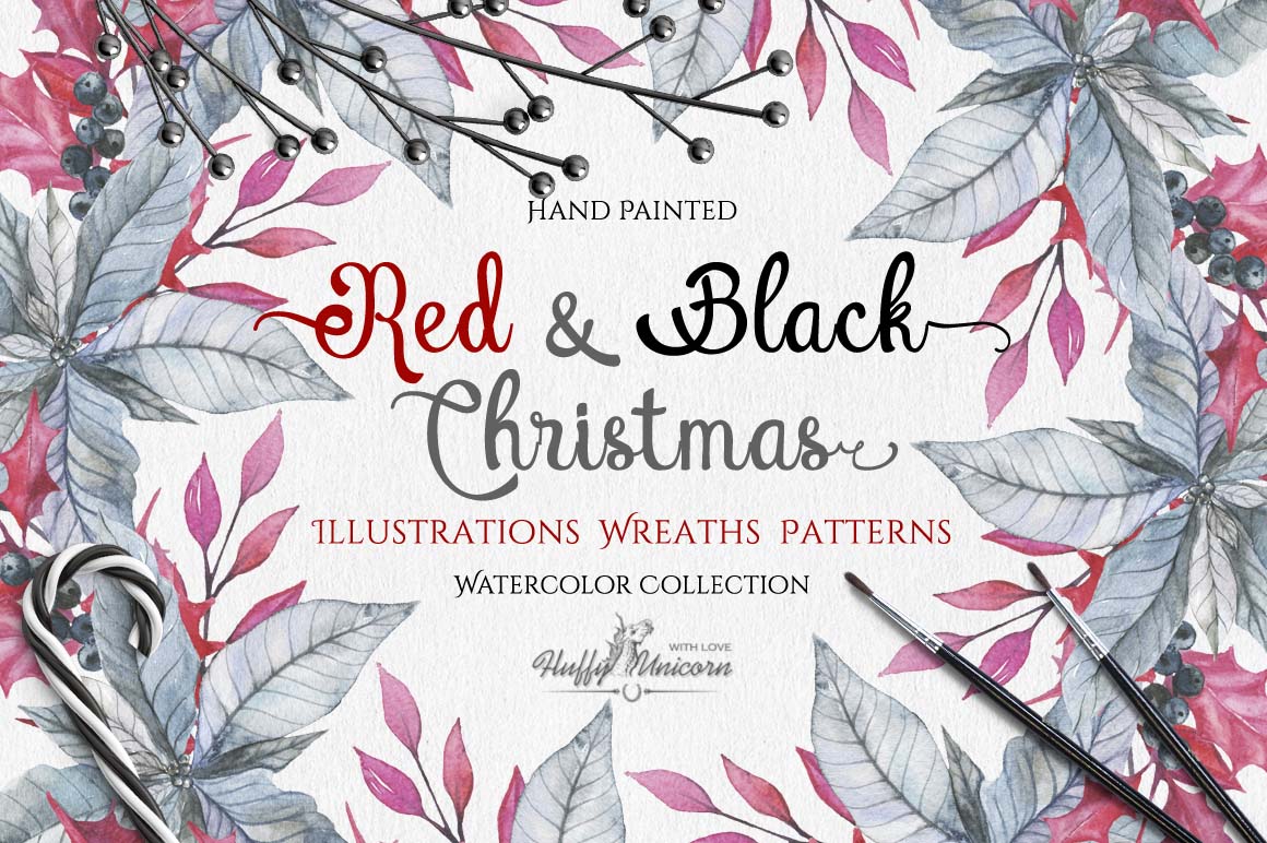 2. Watercolor Red & Black Christmas Set from Fluffy Unicorn