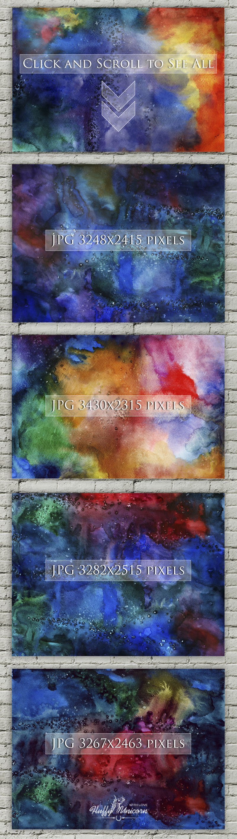 - 2 JPG(300dpi) watercolor hand painting textures.