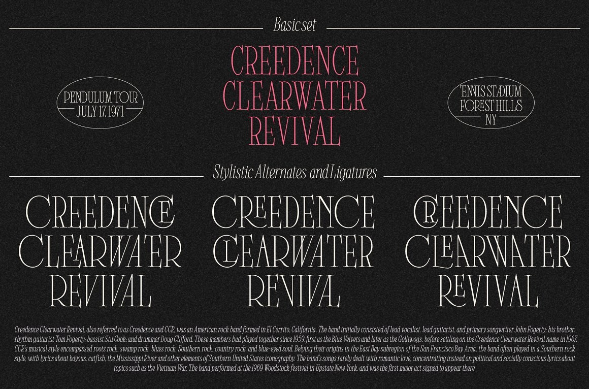 Clementia – a stylish condensed serif font with Art Deco mood and huge variety of stylistic alternates and ligatures