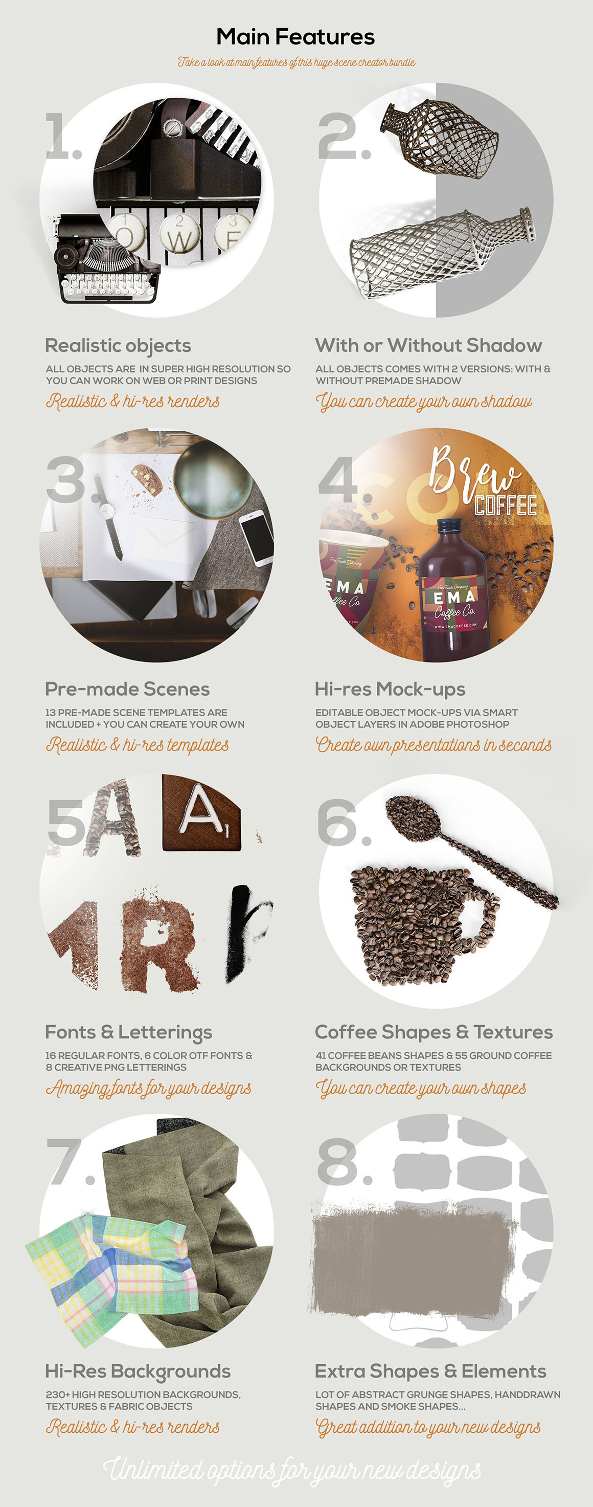 - 13 realistic scenes – layered PSD templates up to 6500 x 5000 pixels