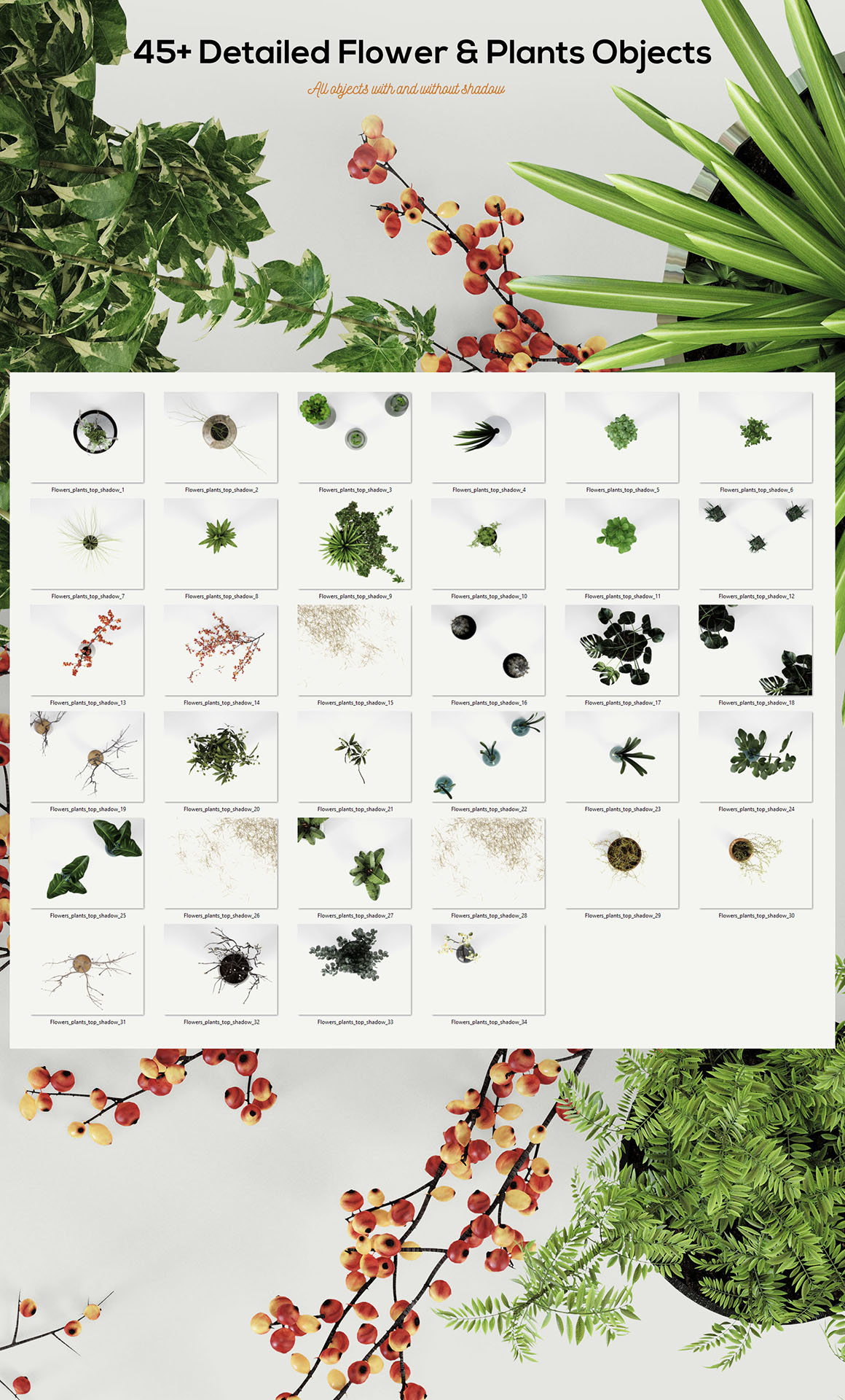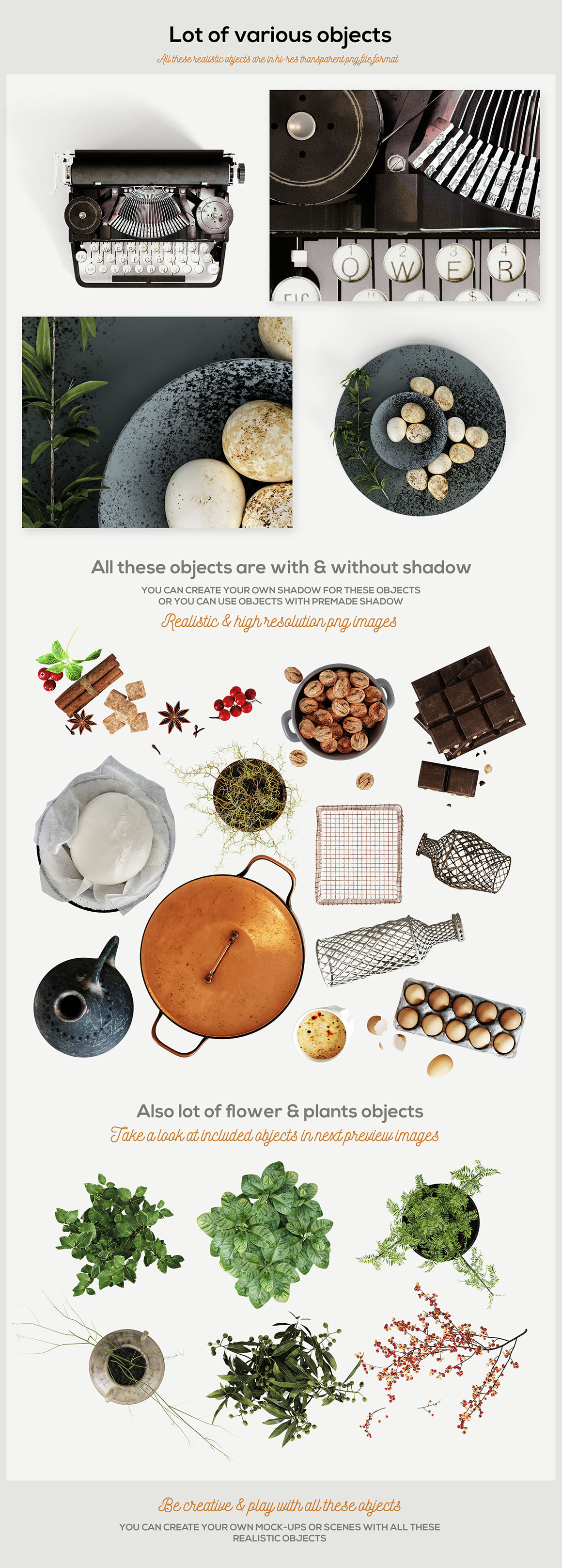 - Lot of various realistic objects: home, kitchen, office, flowers & plants…