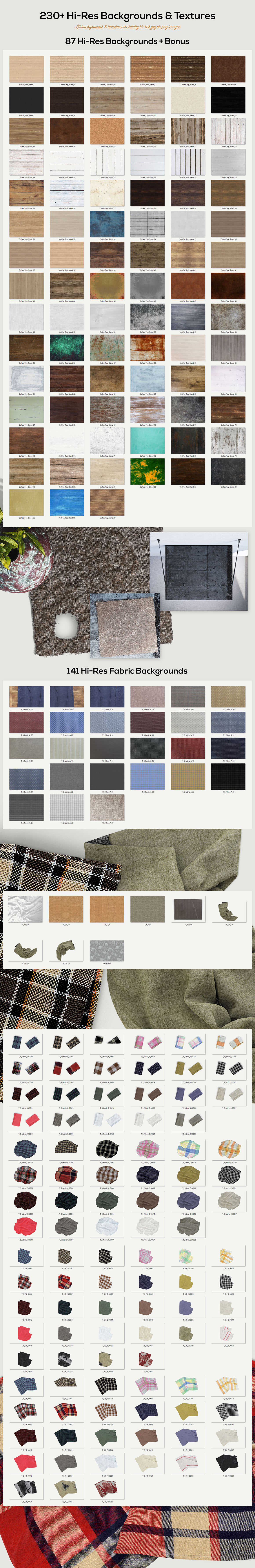 - Lot of hi-res beckgrounds, textures & fabric backgrounds