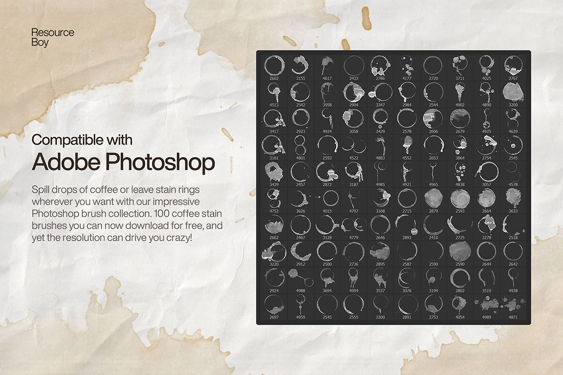 100 FREE abstract & artistic coffee stain shapes – Photoshop brushes from Resource Boy. Download & enjoy đ