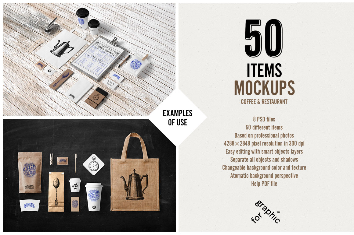 - Coffee or restaurant style mock-up templates based on professional photos!