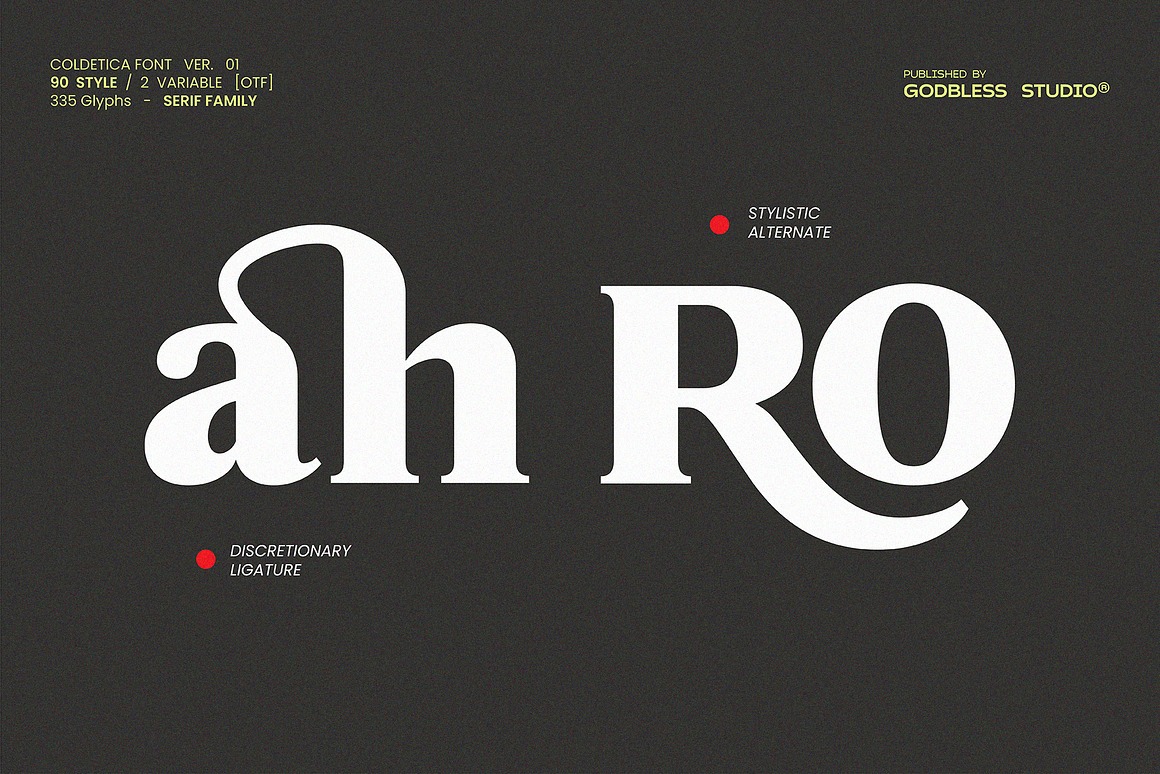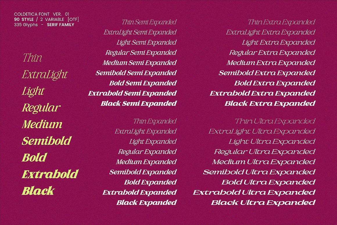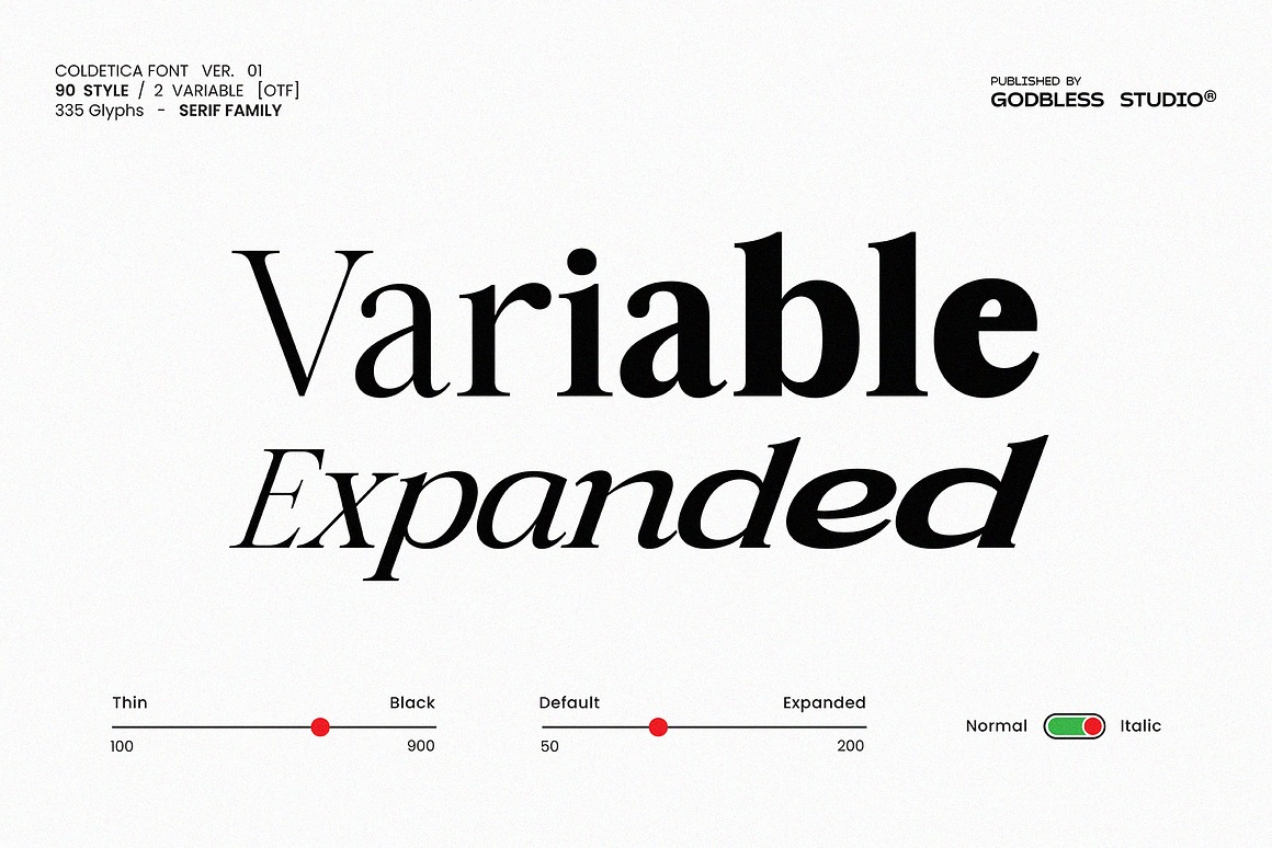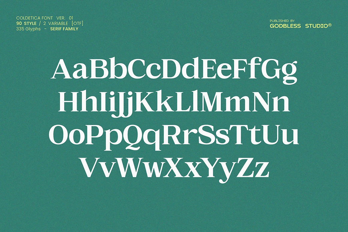 Coldetica Serif Variable Typeface from Godbless Studio contains typeface with 90 styles for your new modern or futuristic projects! Don’t miss this trendy & sharp style branding font set 😉
