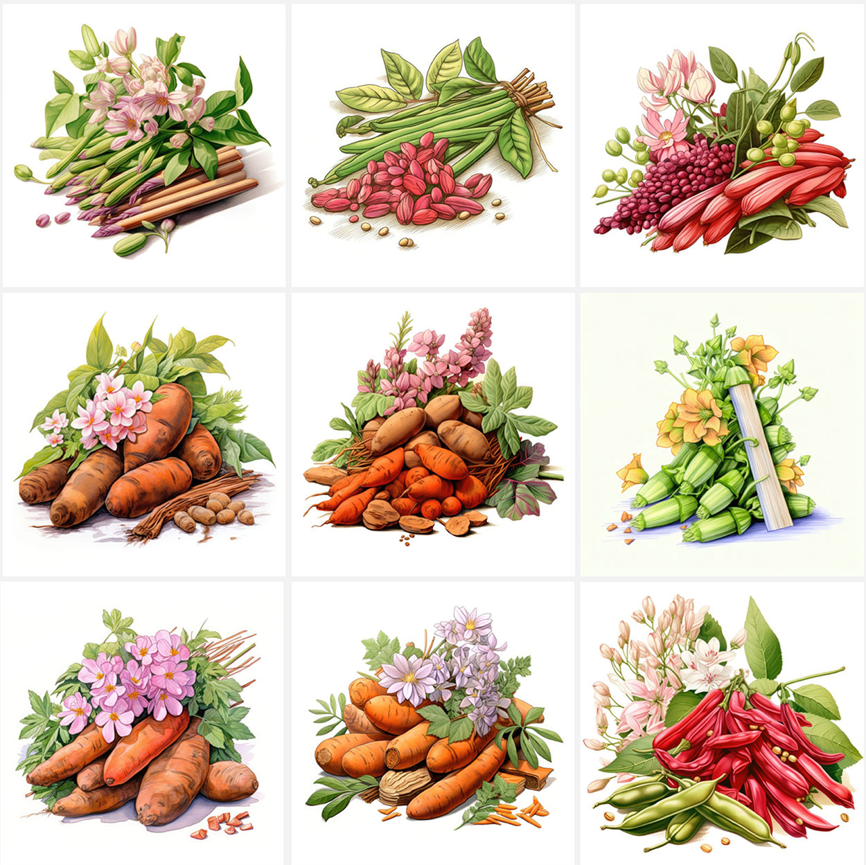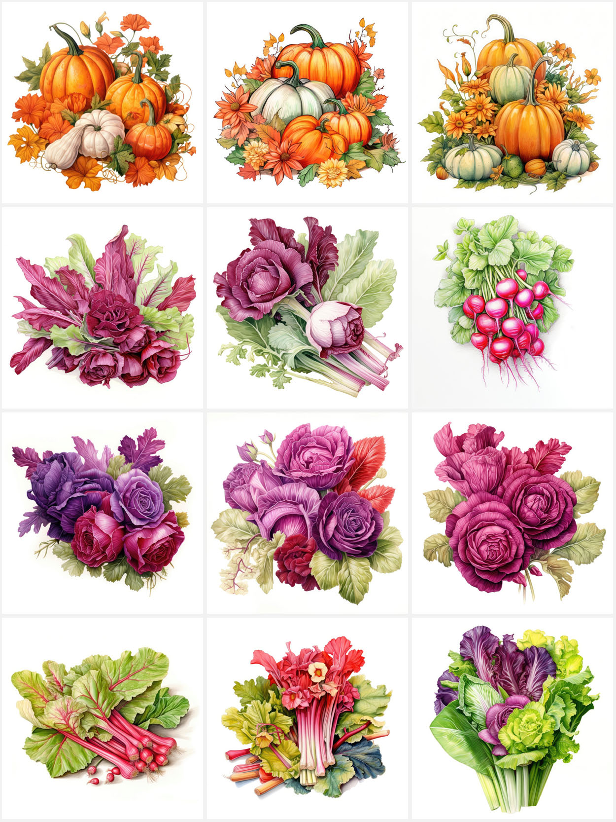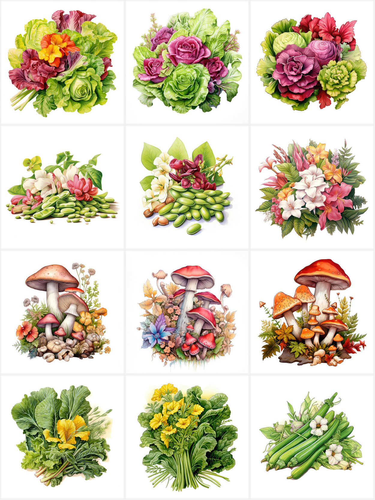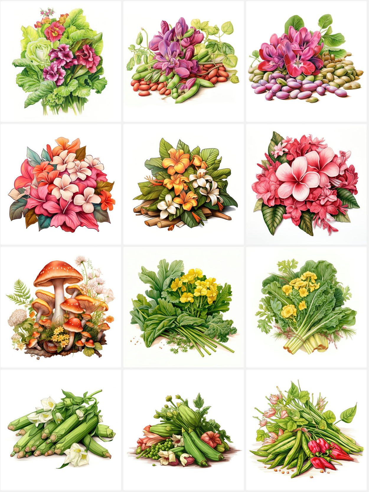 Discover our vibrant, high-quality collection of vegetable PNG images featuring piles of artichokes, bamboo shoots, Belgian endive, and cabbage, each complemented by their distinctive flowers and leaves. Our 250-image set is perfect for anyone looking to infuse their projects with a fresh, organic, and visually stunning touch. With each PNG available in 6144×6144 pixels, your images will be clear and detailed. Whether you’re a designer, teacher, food blogger, or marketing professional, these images will serve a multitude of purposes. Plus, with a commercial license included, the possibilities are truly endless!