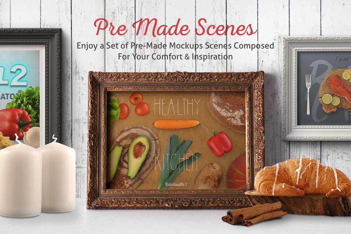 You’ll find here 11 creative presentation mockup sets fromCreative Veila. You’ll find here a lot of vintage paper mockups or poster mockups & great food or restaurant scene creators…