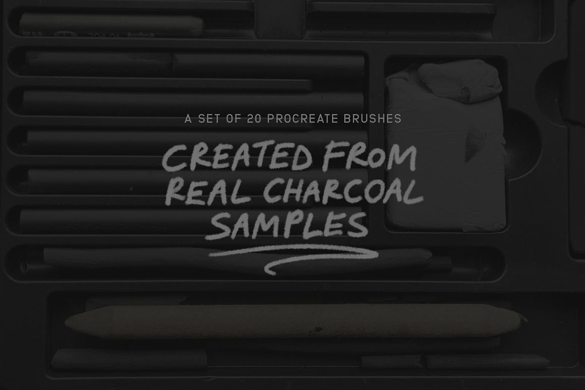 A set of 20 charcoal Procreate brushes: these brushes were created from charcoal and traditional media samples that have been carefully scanned transformed into brushes.