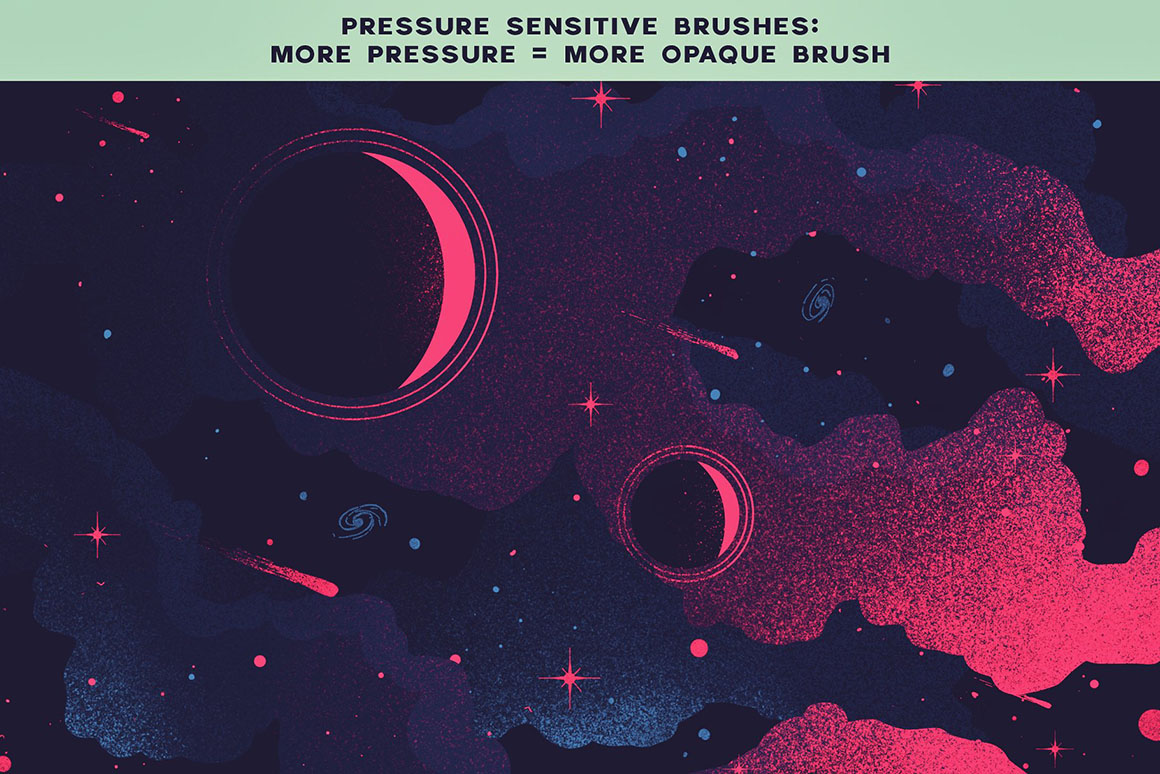 Sketching brushes: These are great for outlines and general drawing & sketching, or for adding finer details to your illustrations.
