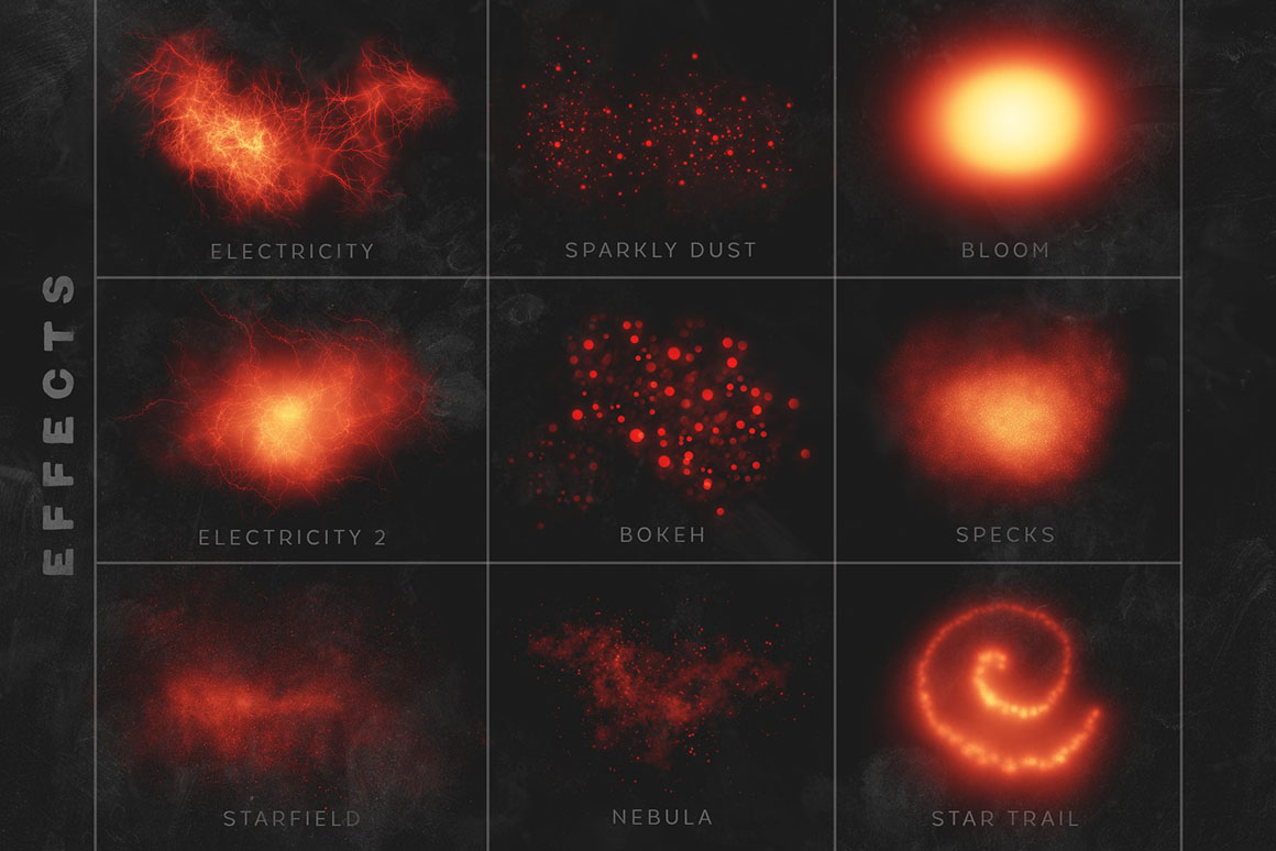 Note: due to their nature, these brushes work best on darker backgrounds.