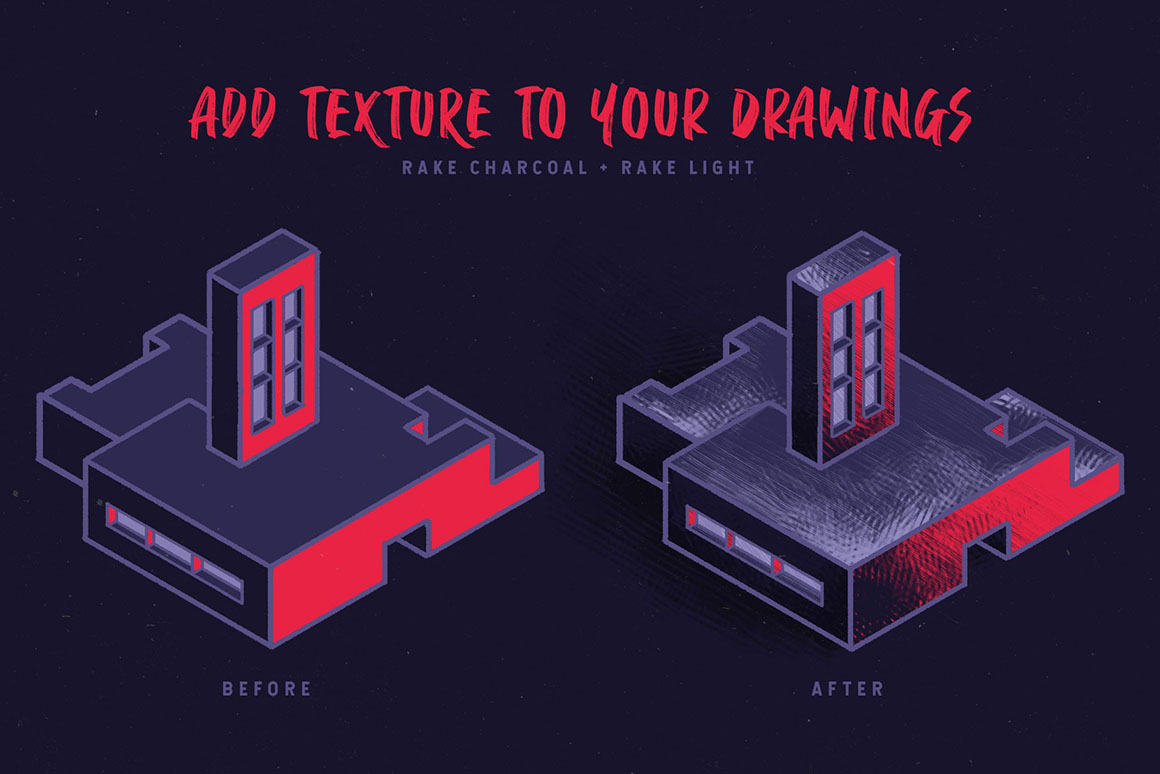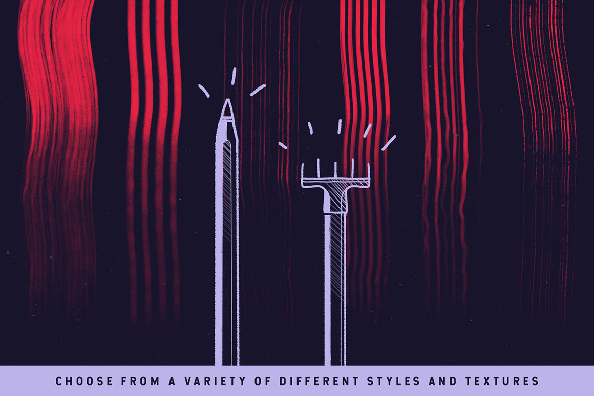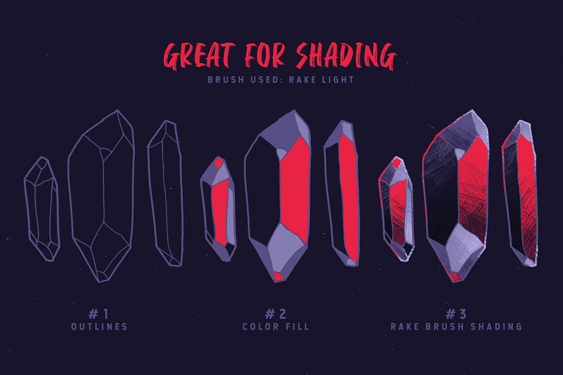 Bonus: Also included are two useful liner brushes that you can use in combination with the rake brushes. For each brush, I’ve included both pressure sensitive and monoline versions, so you don’t have to tweak the brushes settings while drawing 🙂