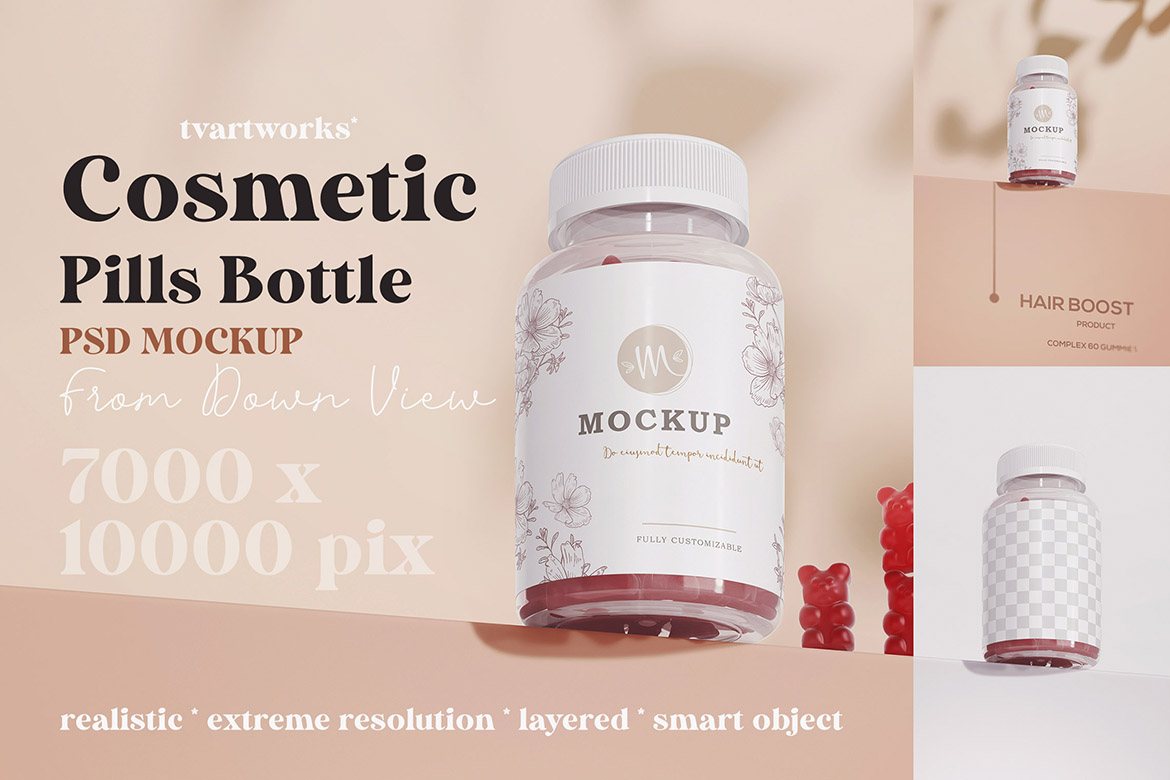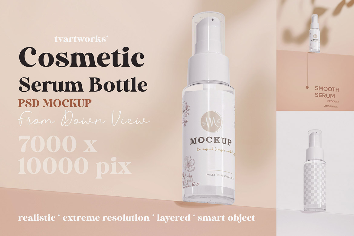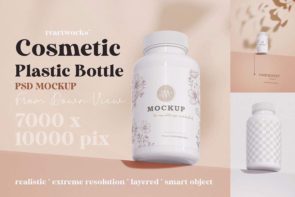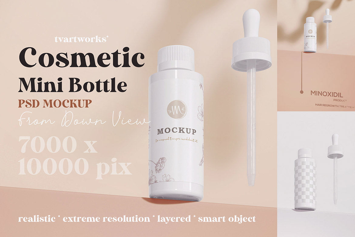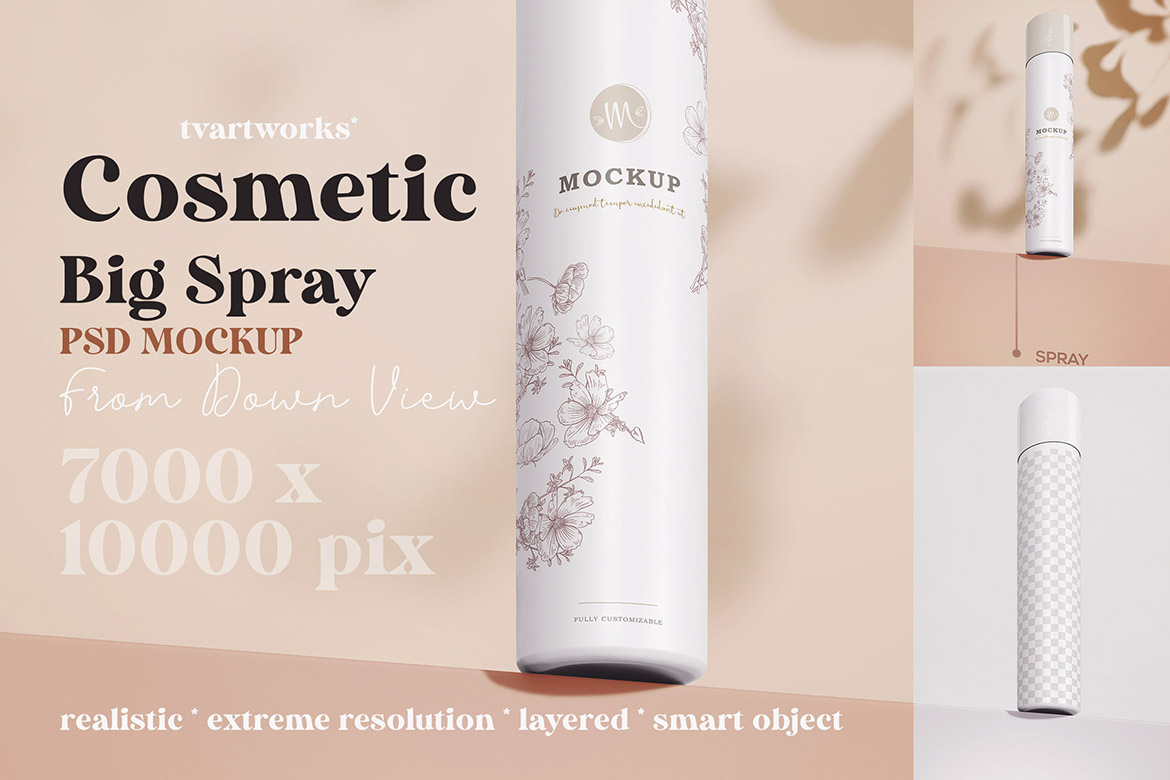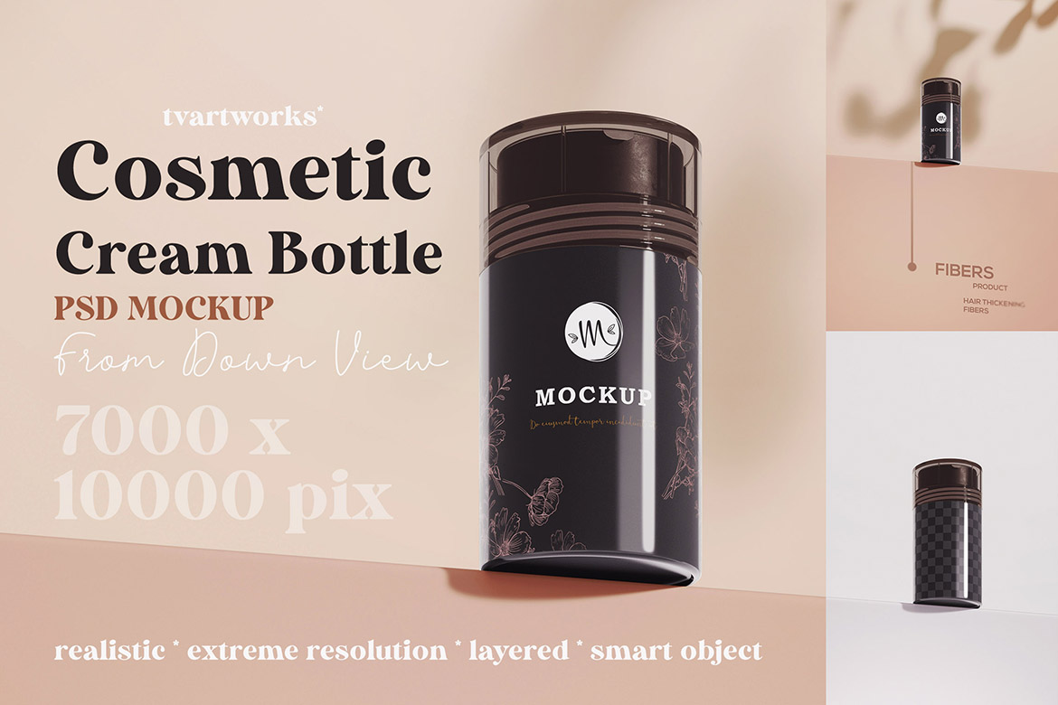 In the Cosmetic Products 1 – 12 Mockups from TVartworks you’ll find 12 various cosmetic product presentation mockup tempates for Adobe Photoshop (smart object PSD templates). With extreme resolution 7000 x 10000 pix on these templates you can create HUGE print presentations for your new branding projects.
