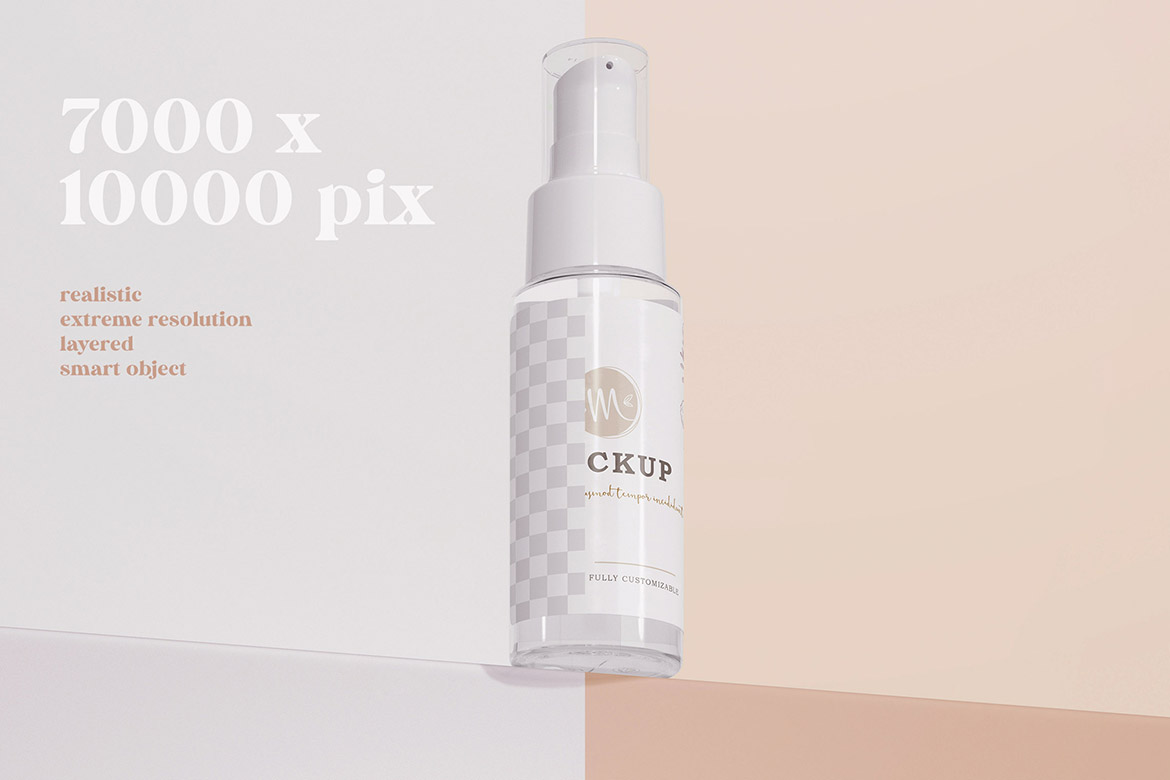 - 12 various cosmetic product presentation mockup tempates for Adobe Photoshop (layered & smart object PSD templates)