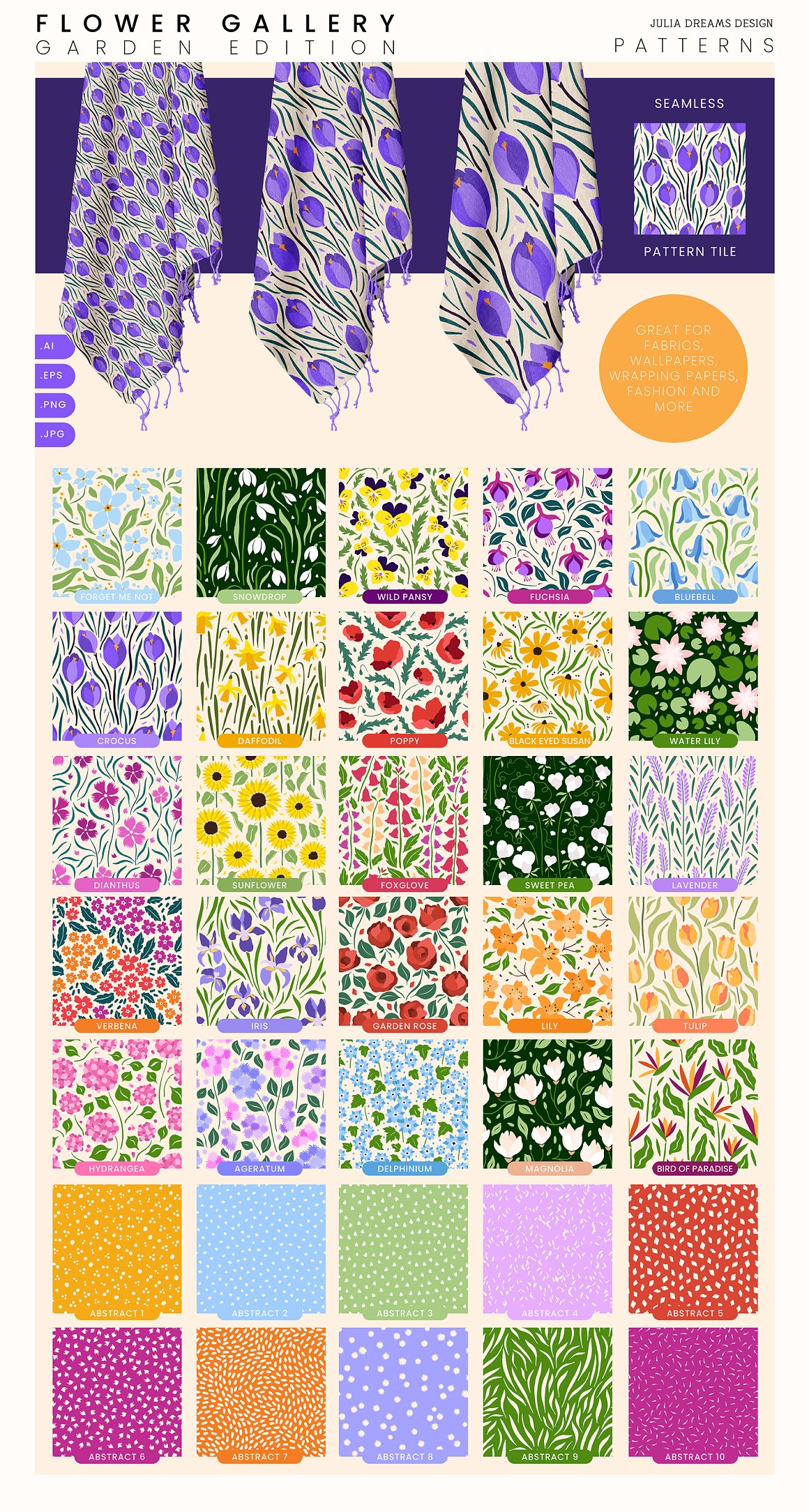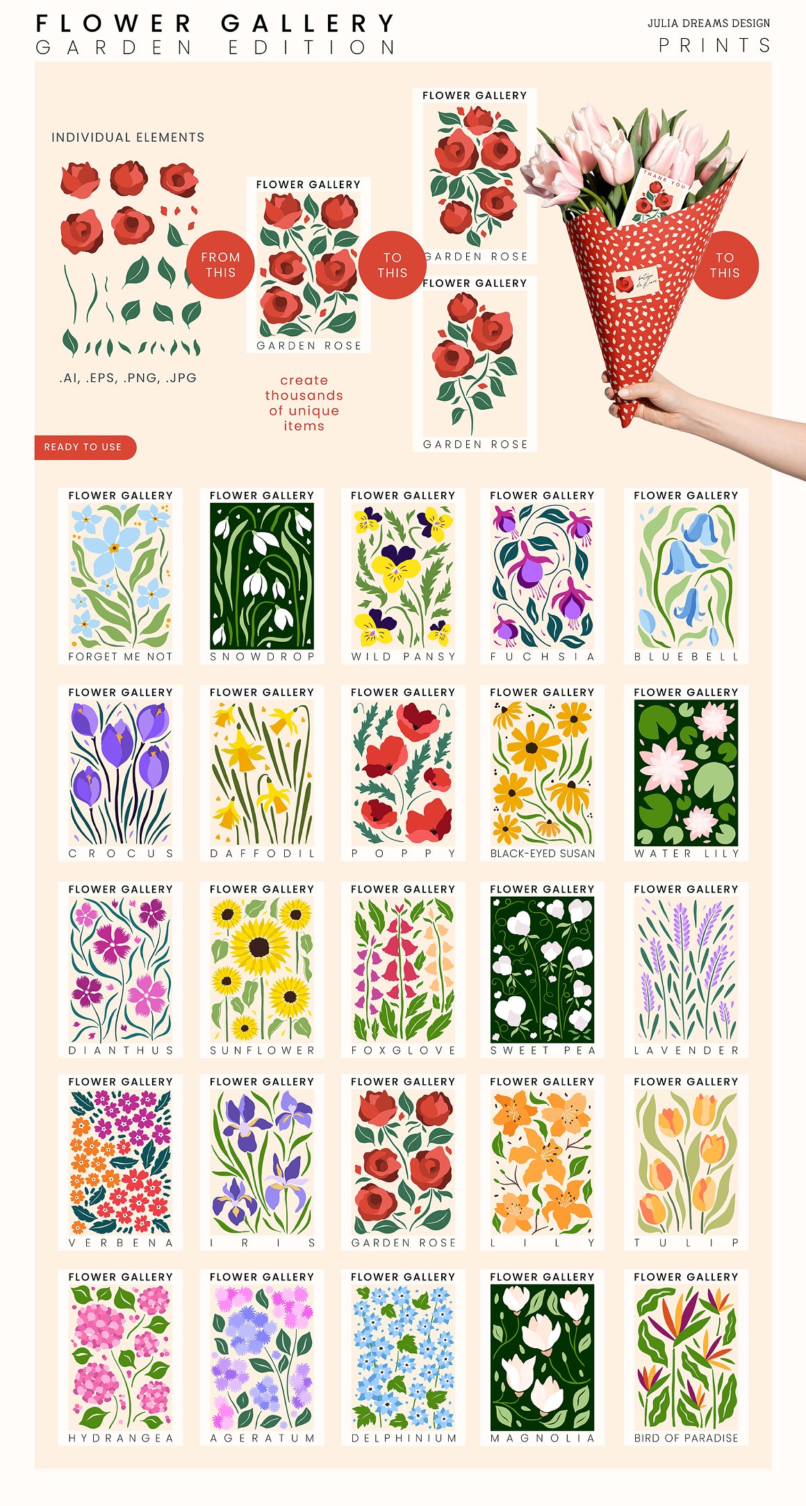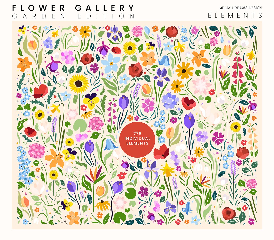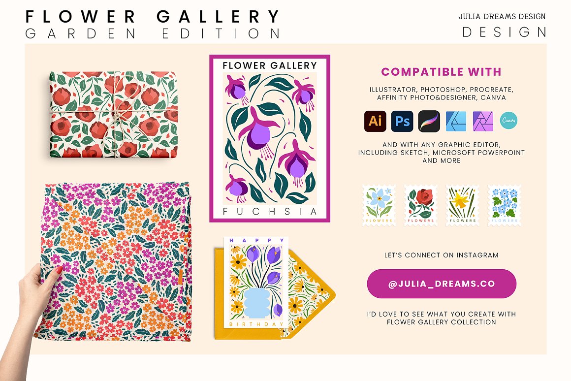 Flower Gallery Garden Edition great for logo, posters, cards, branding, covers, gifts, social media accounts, wrapping paper, wallpaper, fabric, scrapbooking, stickers, sites, blogs, invitations and much more!