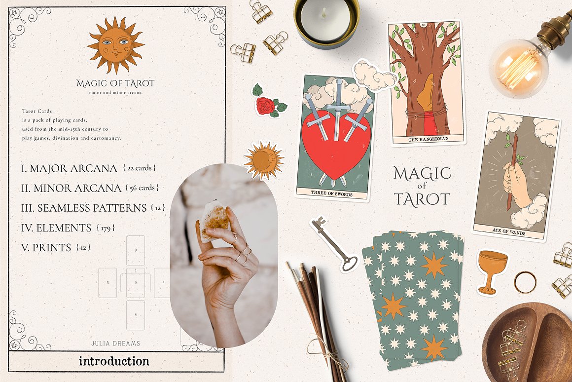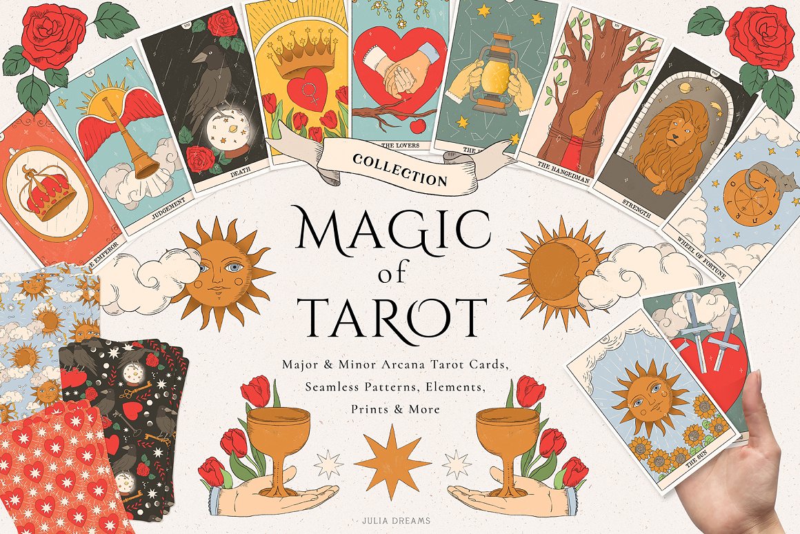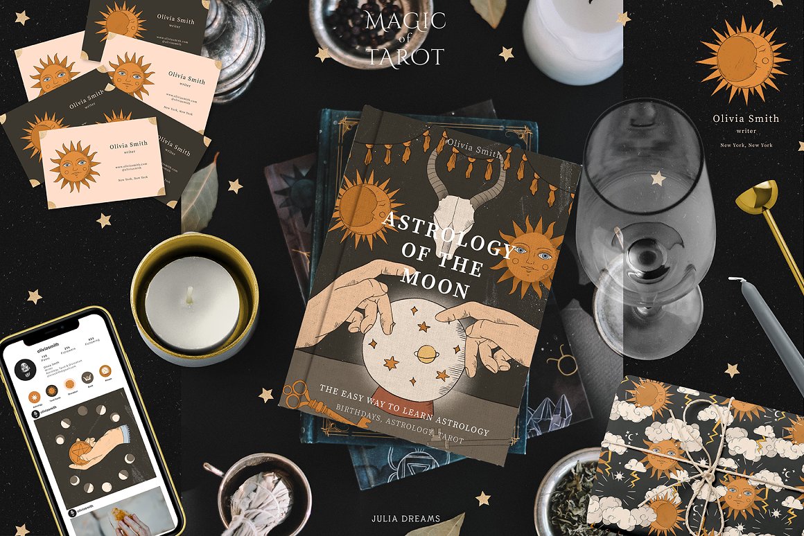 Magic of Tarot great for logo, posters, cards, branding, covers, gifts, social media accounts, wrapping paper, wallpaper, fabric, scrapbooking, stickers, sites, blogs, invitations and much more!