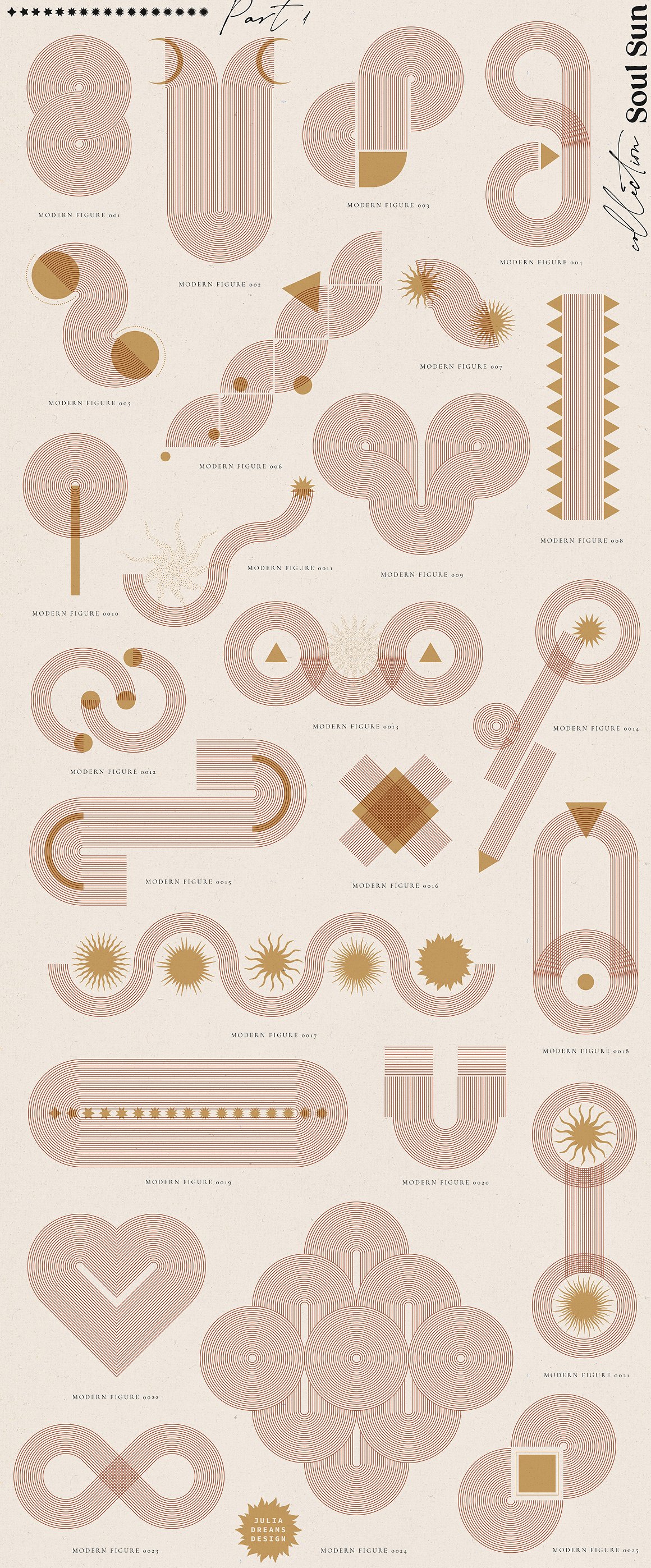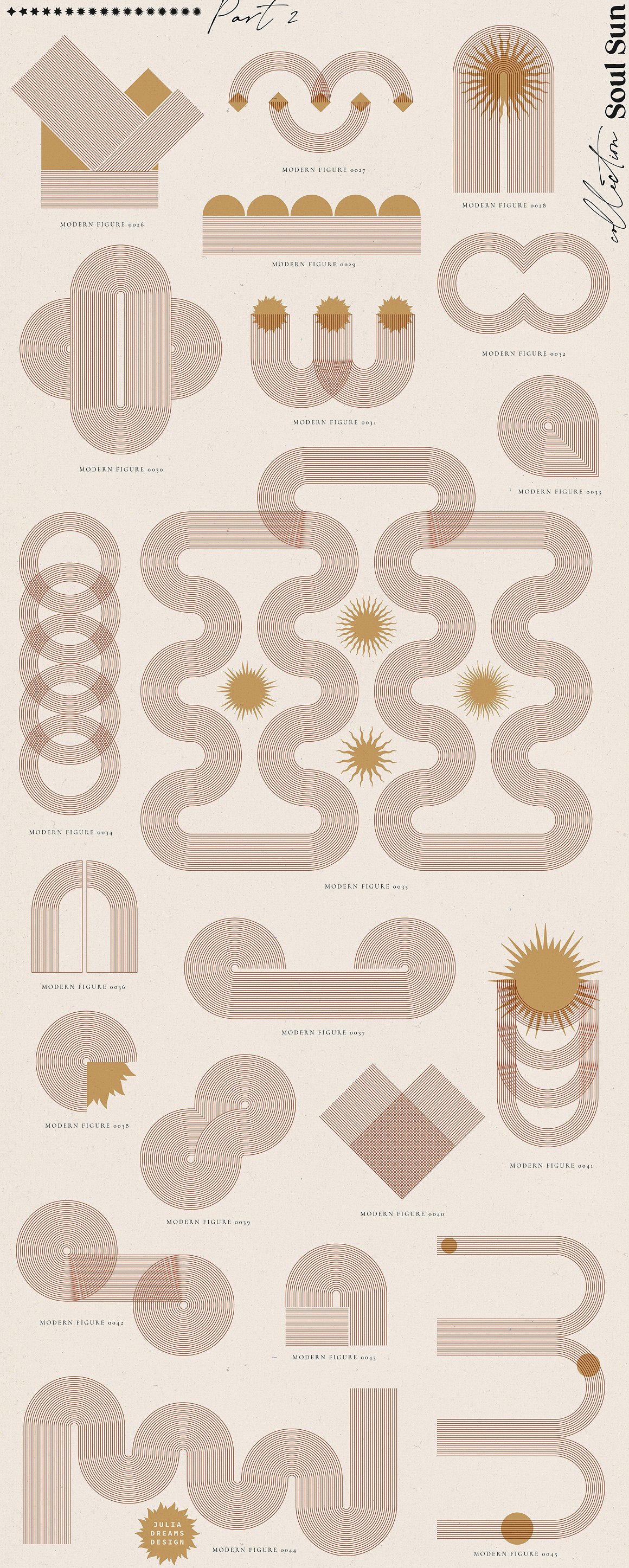 ☾ I’m so glad to introduce you my new magic collection. It’s modern figures and lines with the shapes of the sun and waves. Hand painted with love elements can perfectly complement your project and help create a sophisticated, restrained and fashionable style. All these elements can make a special atmosphere in your project: from wedding to stationery branding, from logo to posters and postcards. ✦