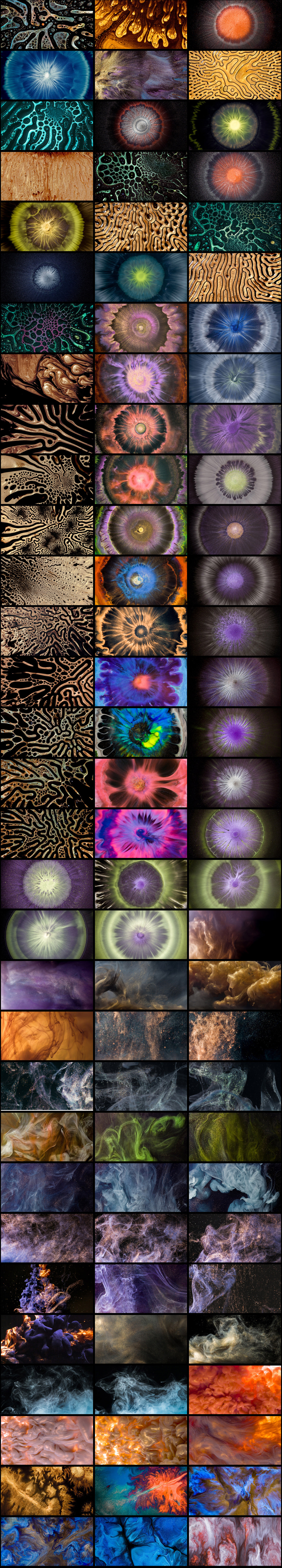 280 hi-res unique abstract textures from liquid ink, paint, ferro-fluids etc experiments