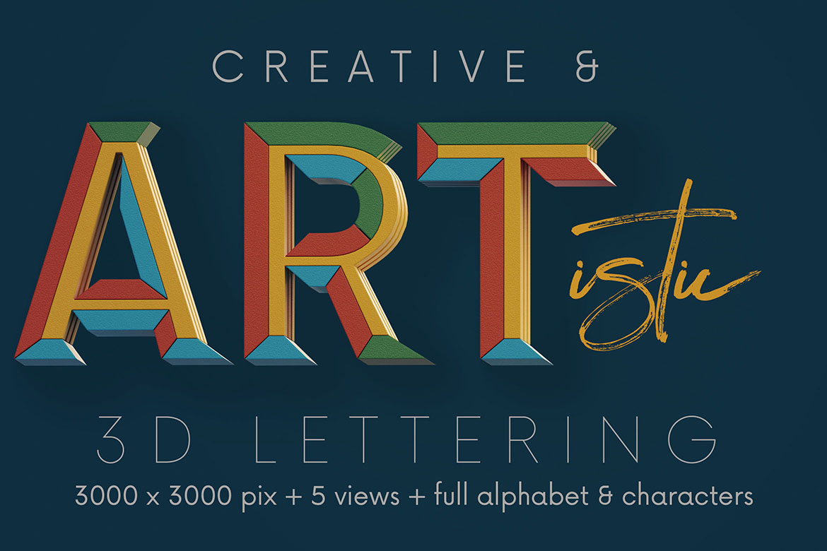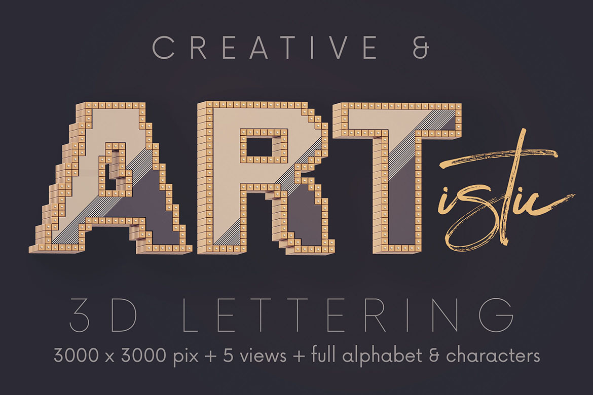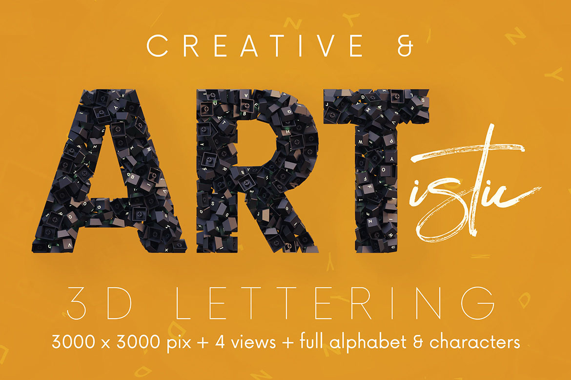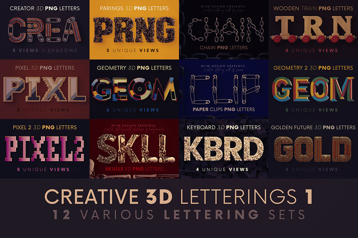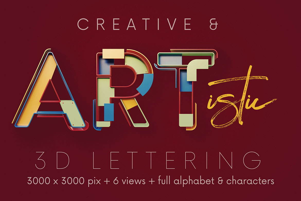 - 12 creative 3D lettering sets (transparent PNG) – all with creative, artistic or futuristic theme 🙂