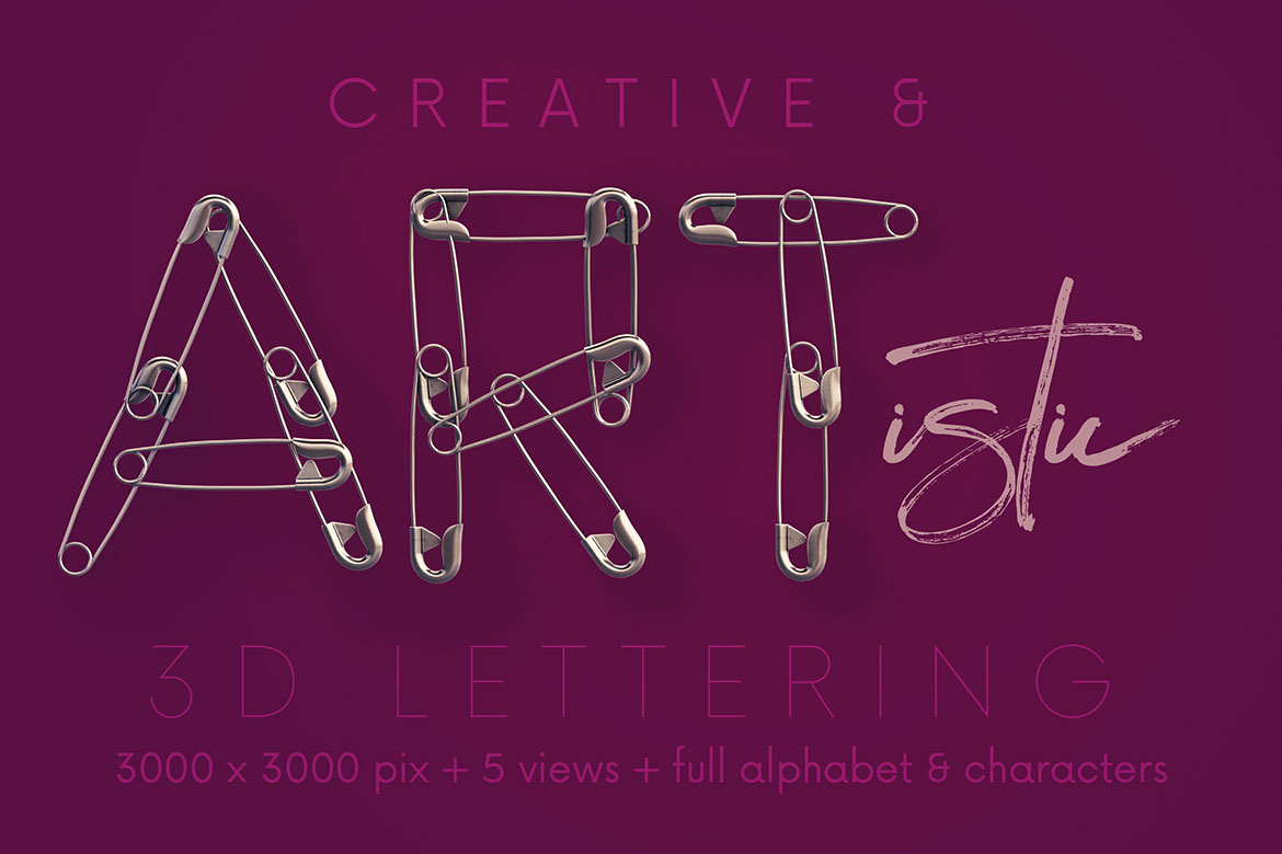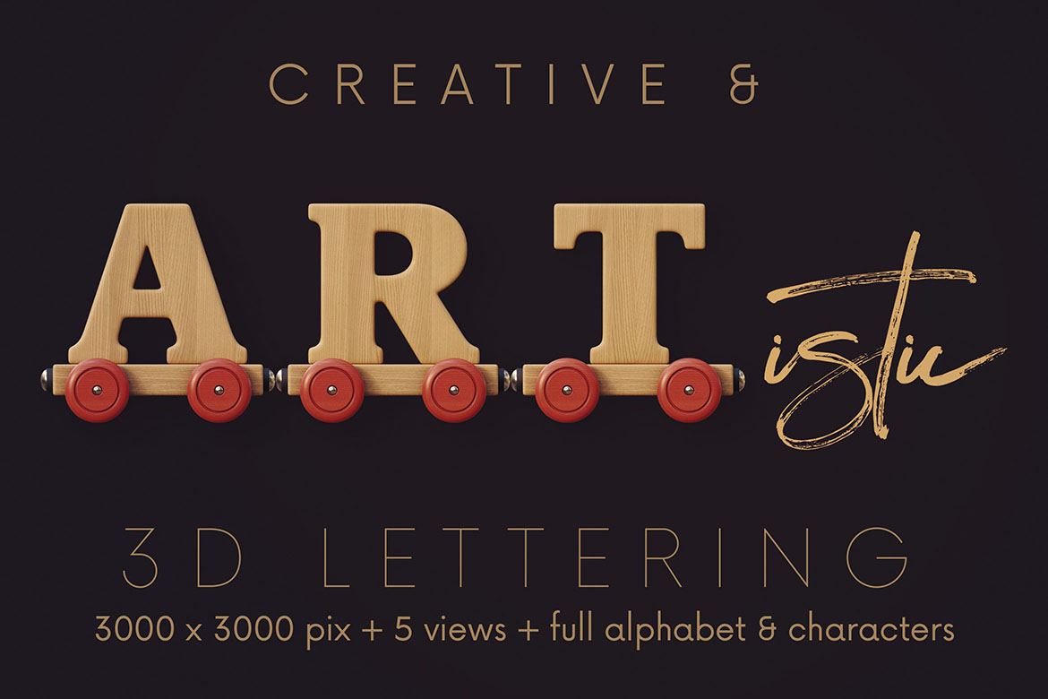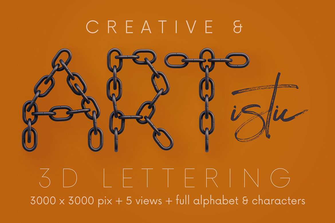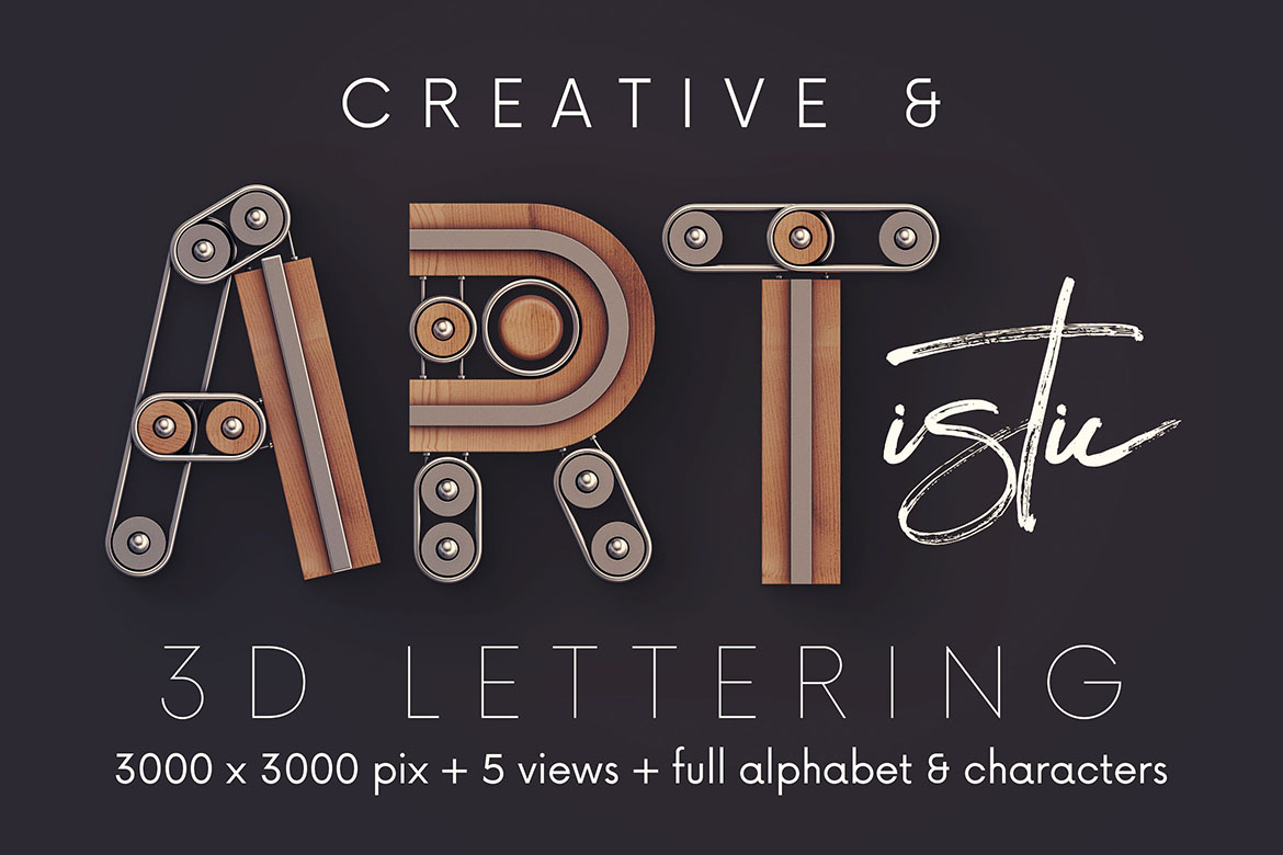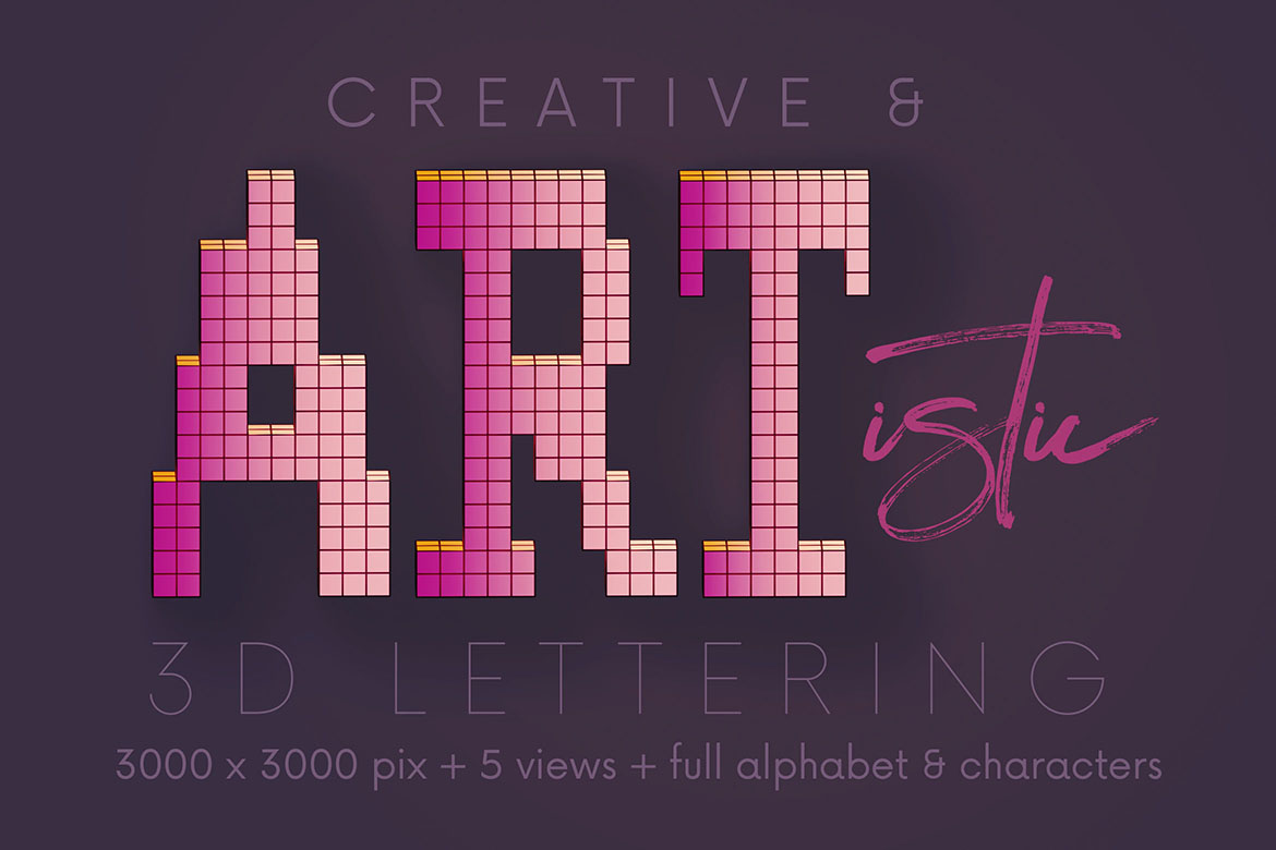 - 12 creative 3D lettering sets (transparent PNG) – all with creative, artistic or futuristic theme 🙂