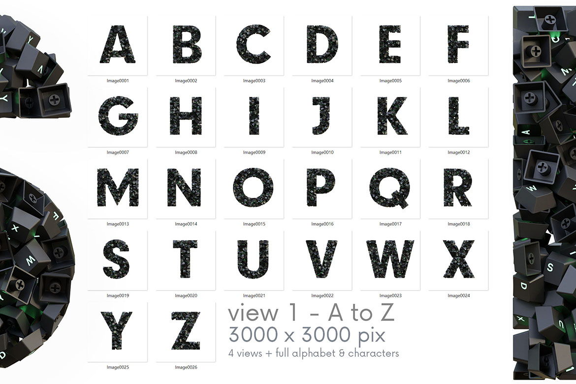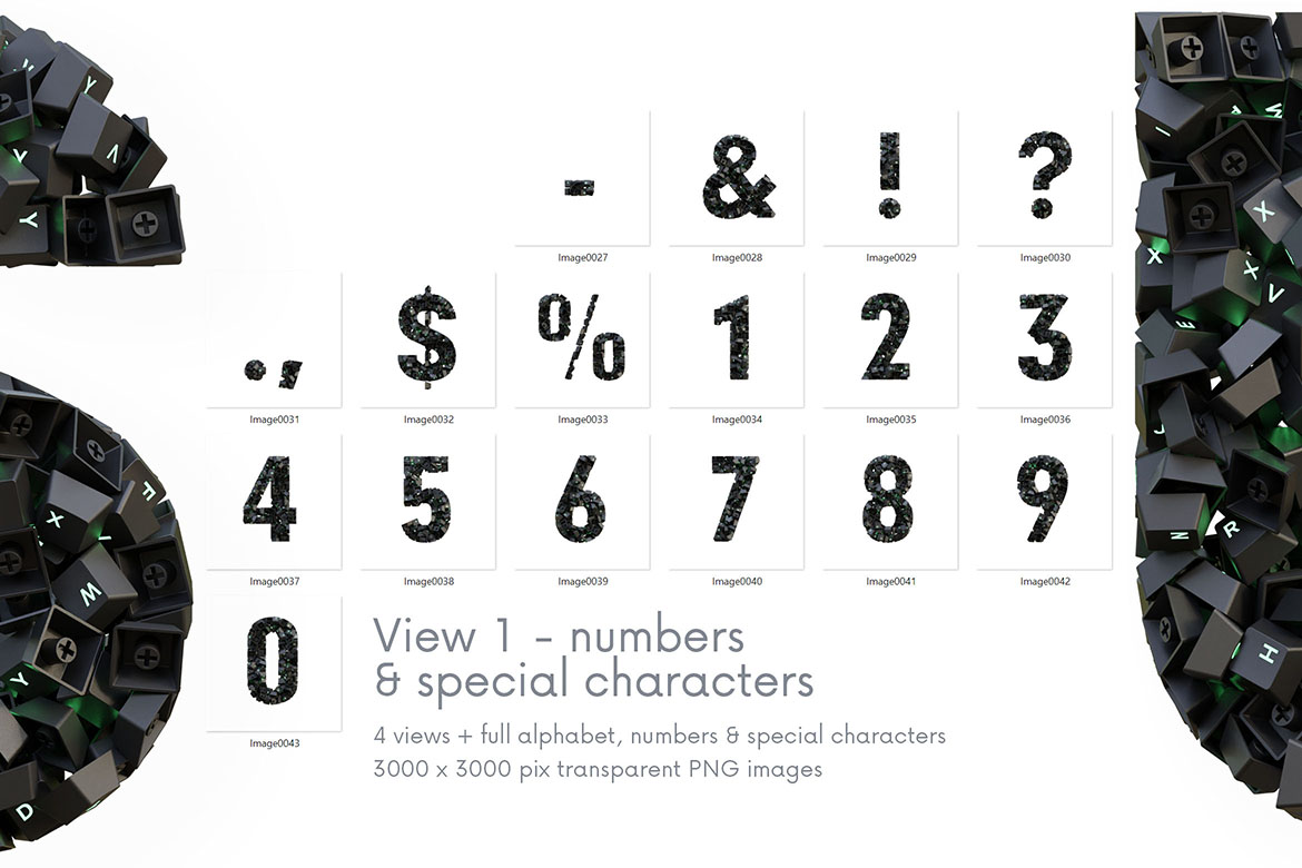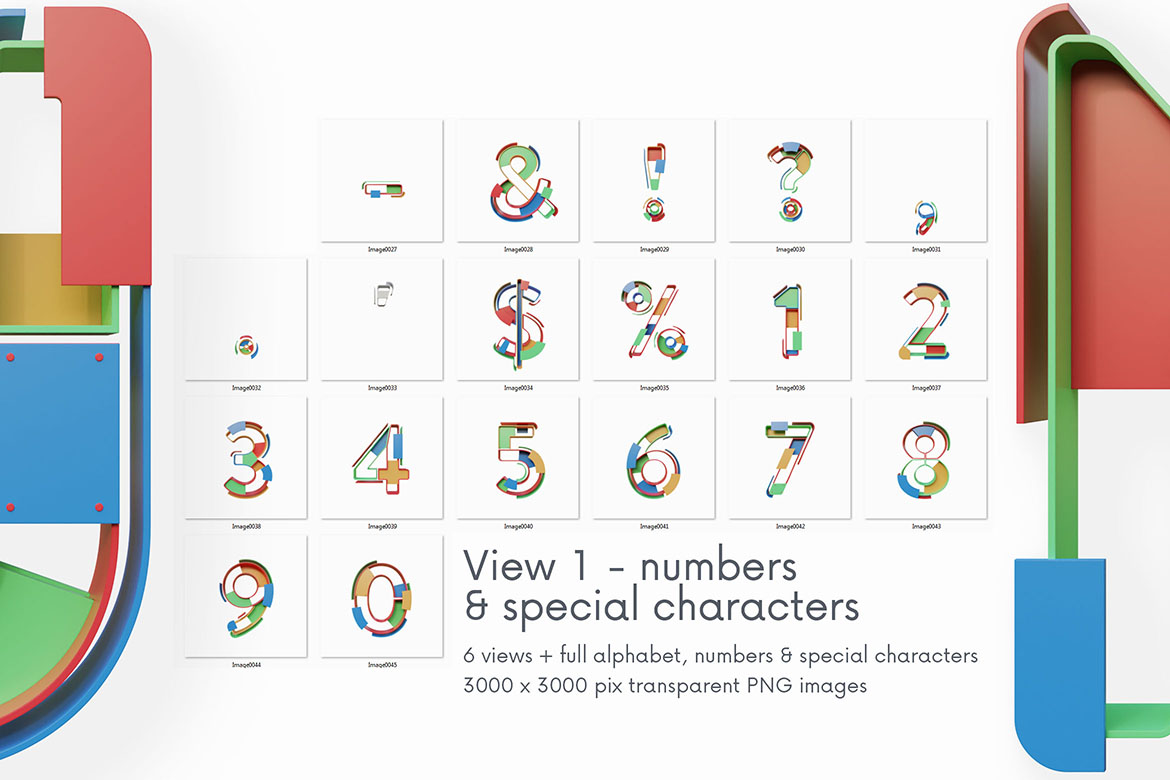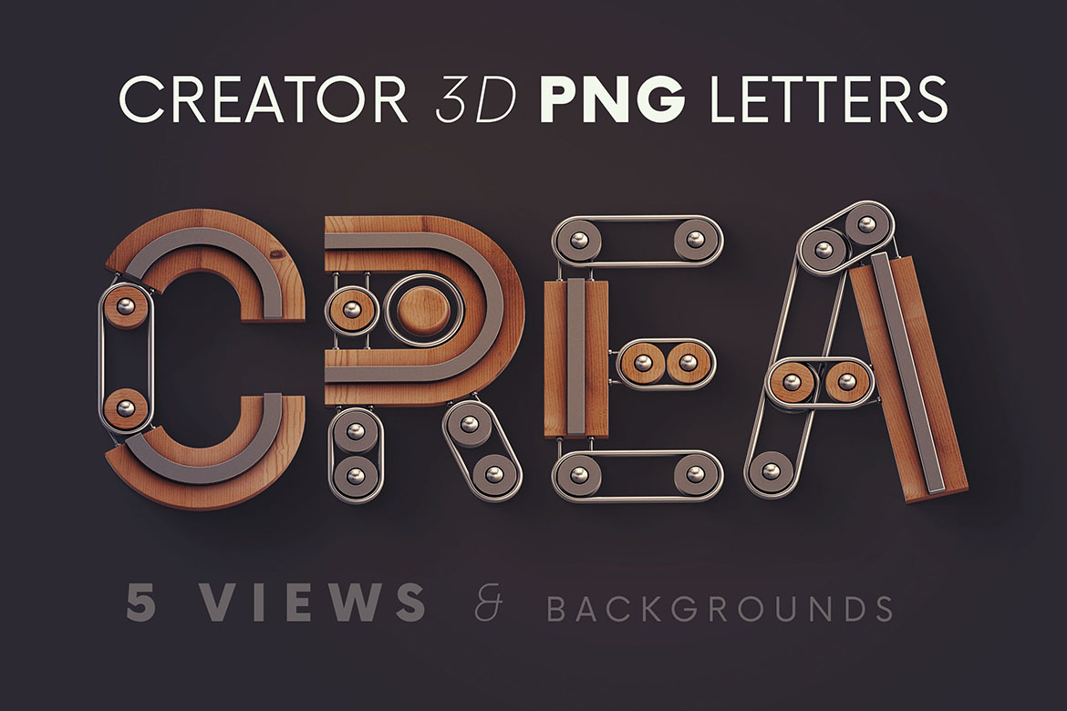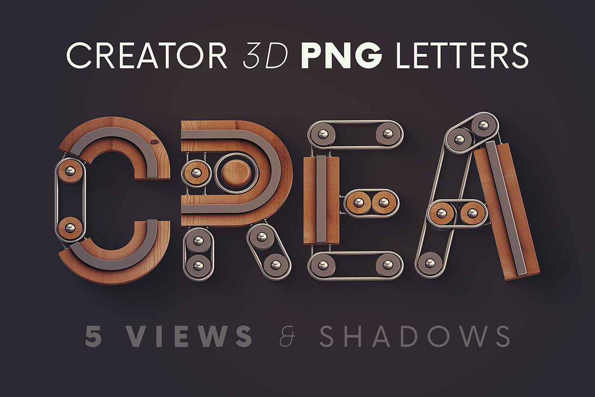 - 12 creative 3D lettering sets (transparent PNG) – all with creative, artistic or futuristic theme 🙂
