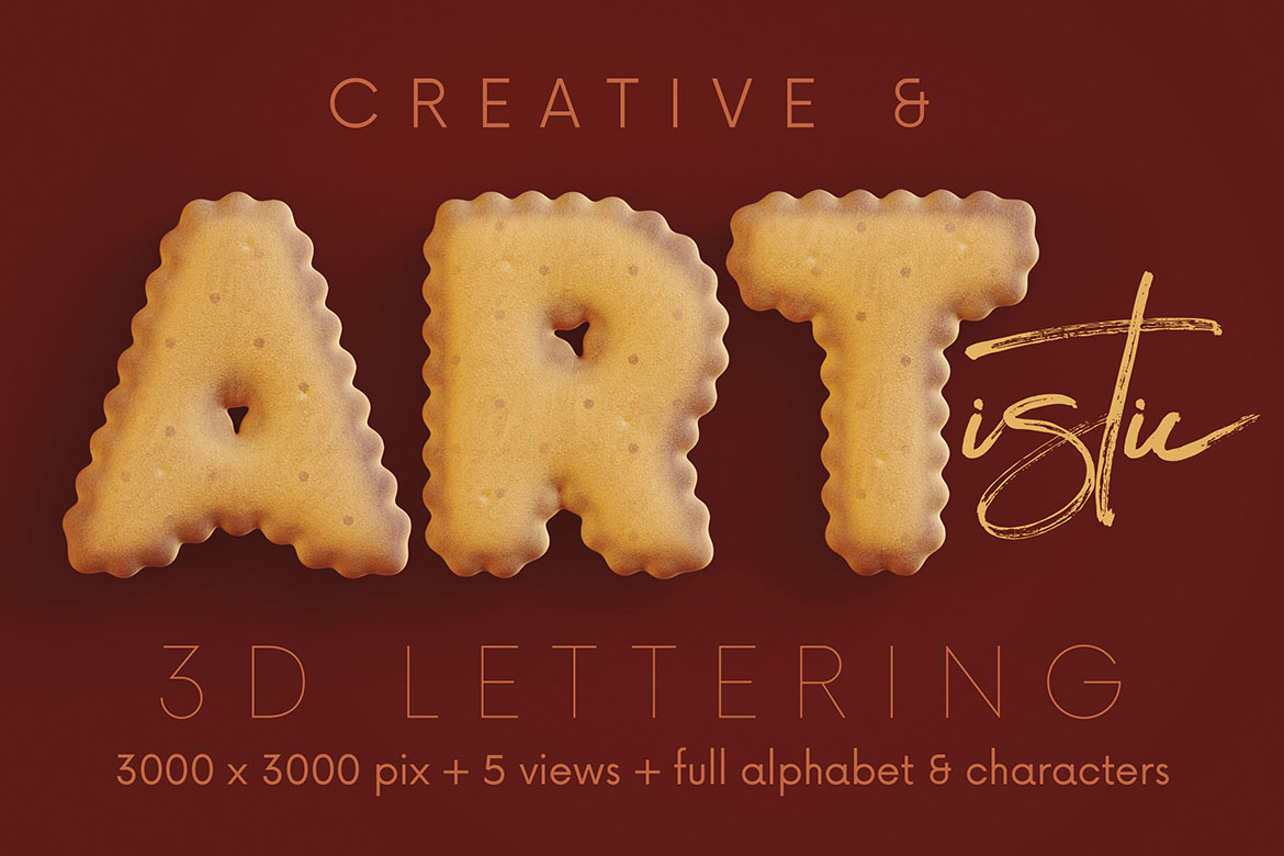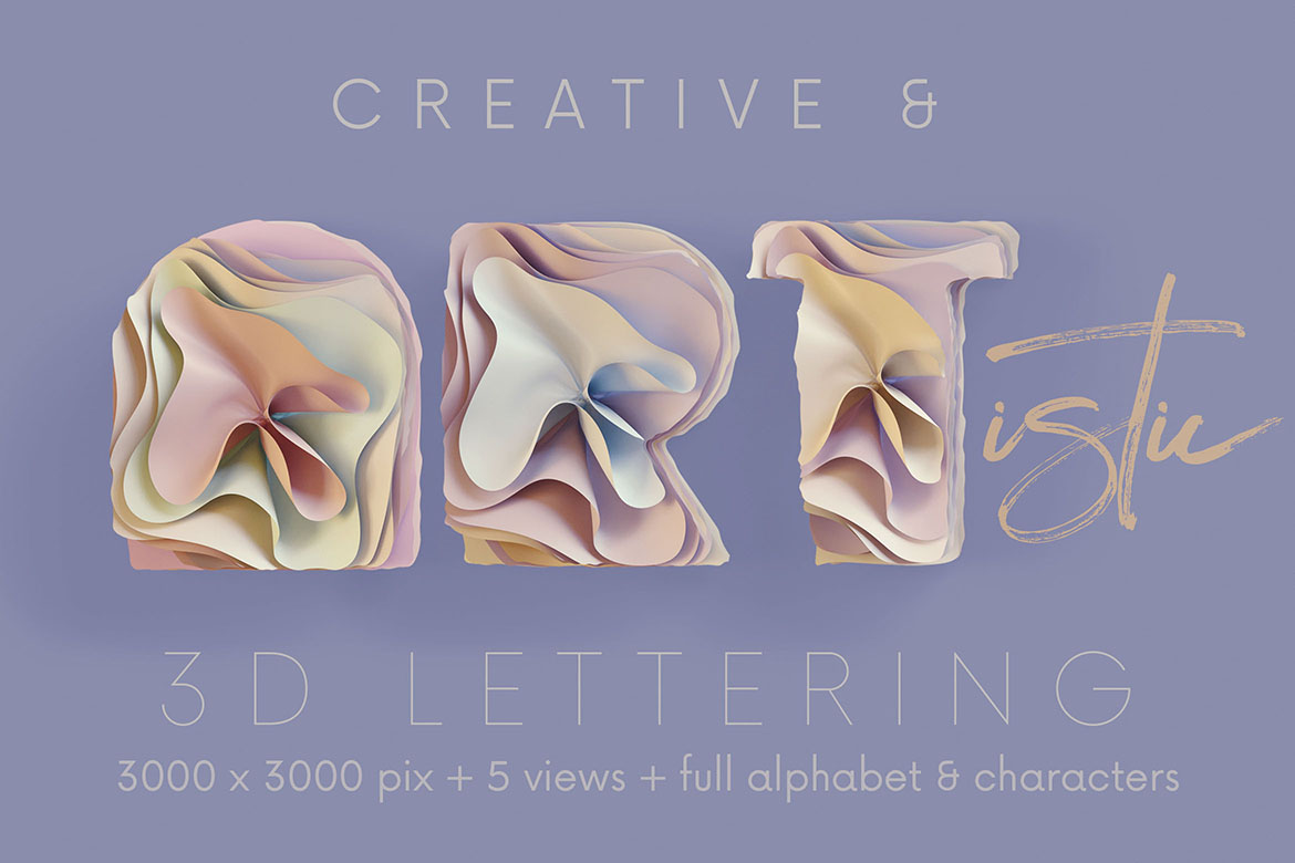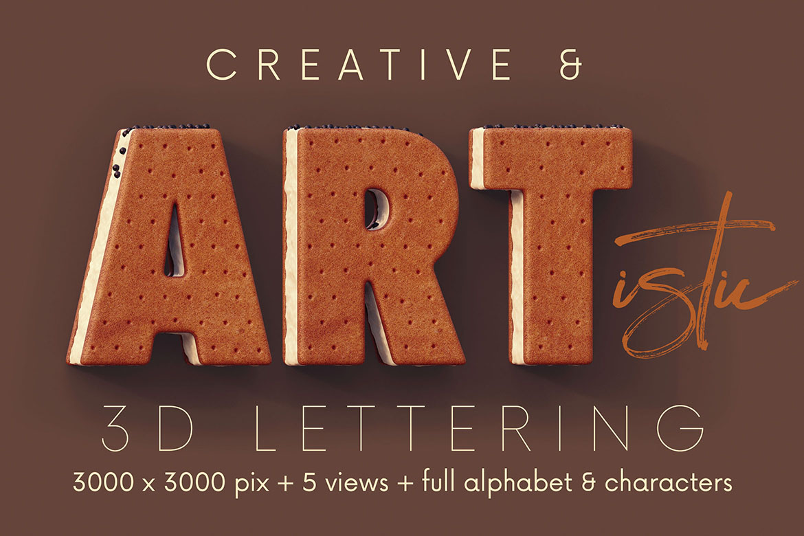 - 12 creative 3D lettering sets (transparent PNG) – all with creative, artistic & funny style 🙂