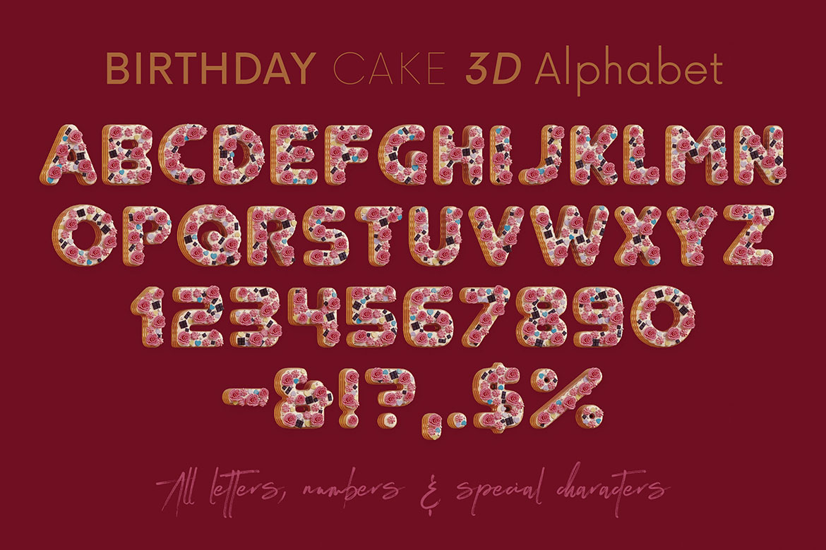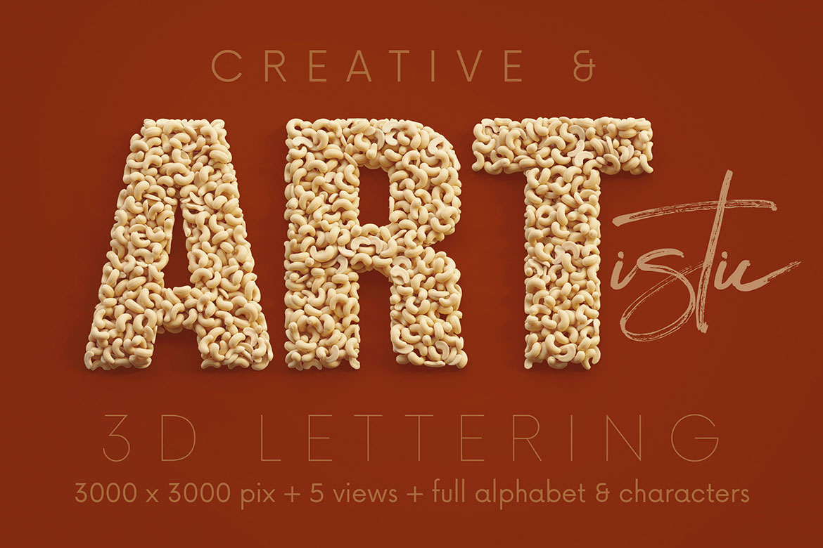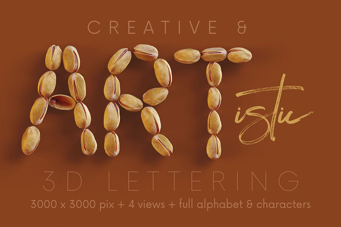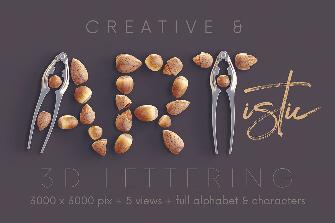 - 12 creative 3D lettering sets (transparent PNG) – all with creative, artistic & funny style 🙂