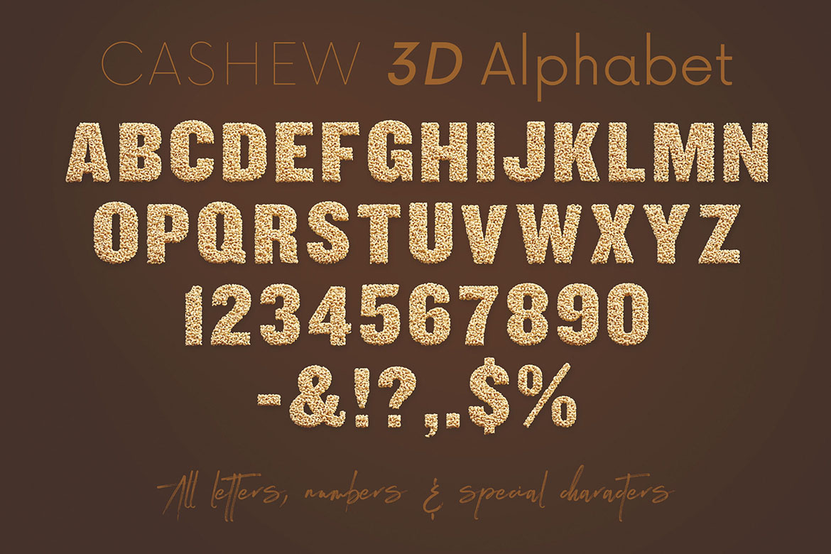 - 12 creative 3D lettering or alphabet image sets (transparent PNG images)