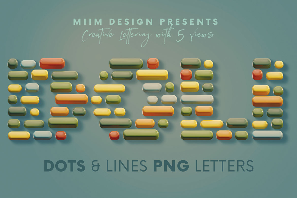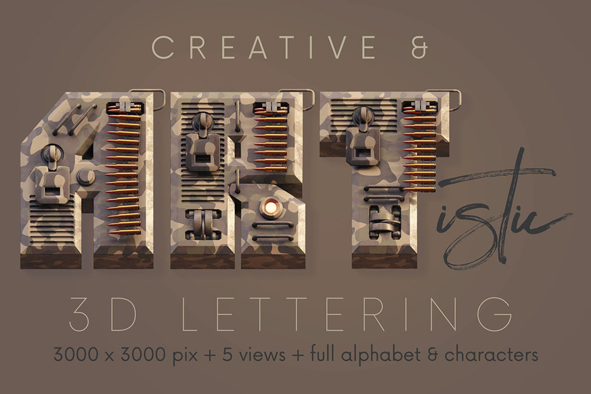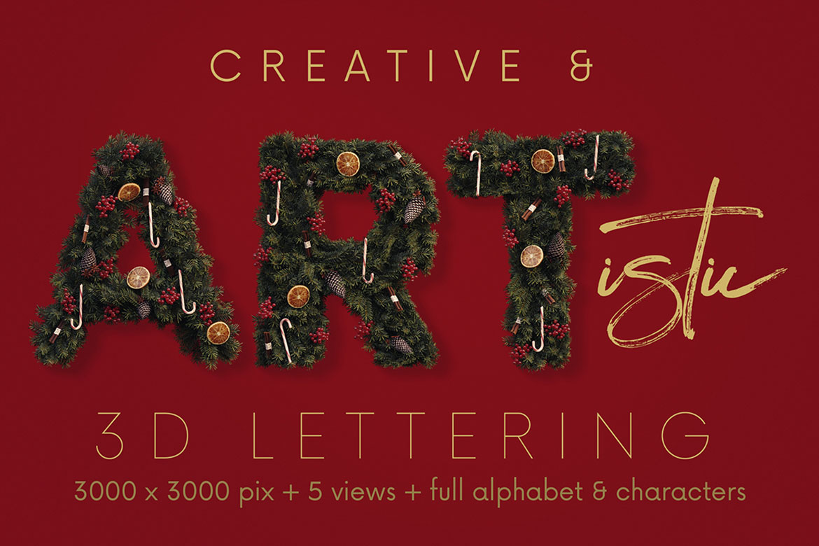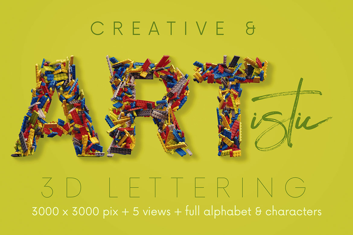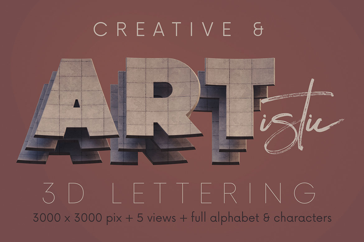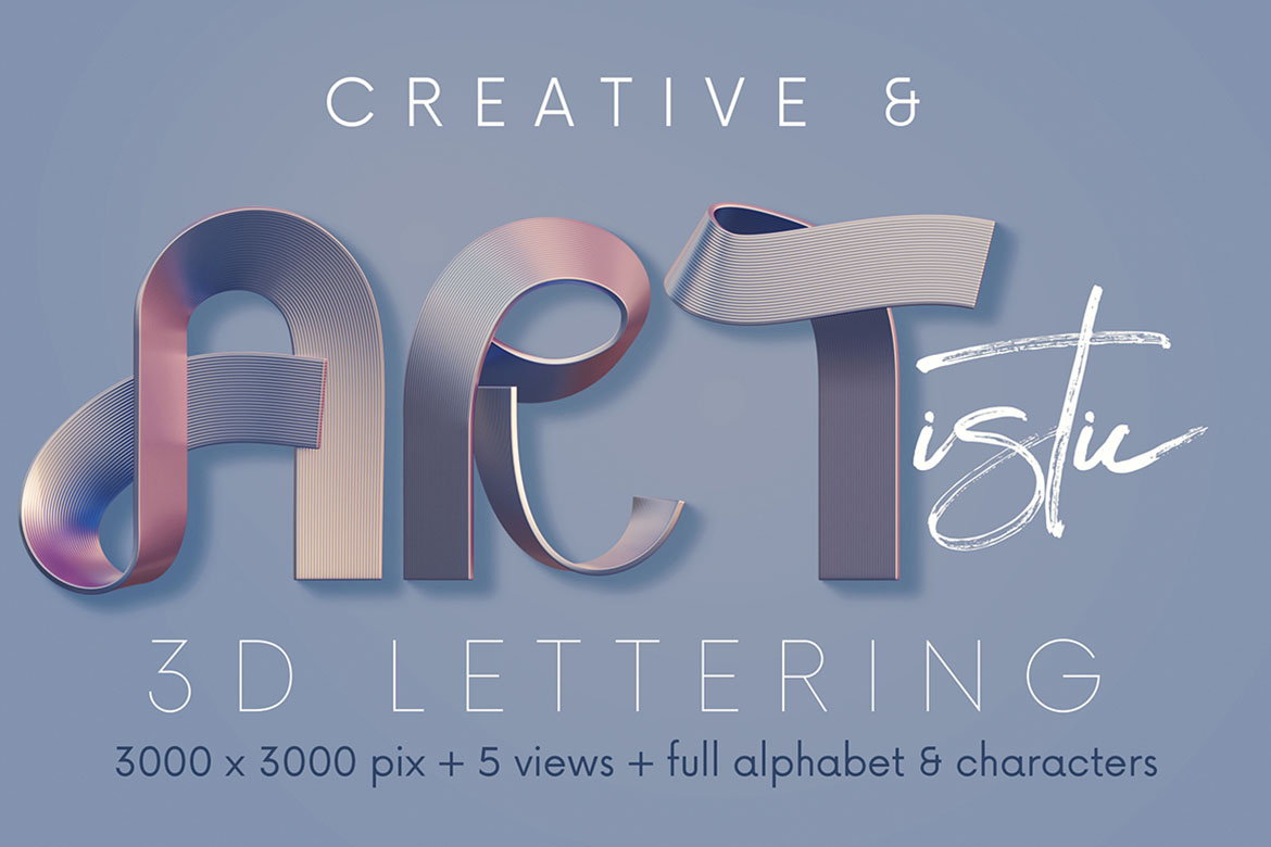 - 12 creative 3D lettering sets (transparent PNG) – all with creative, artistic & funny style 🙂