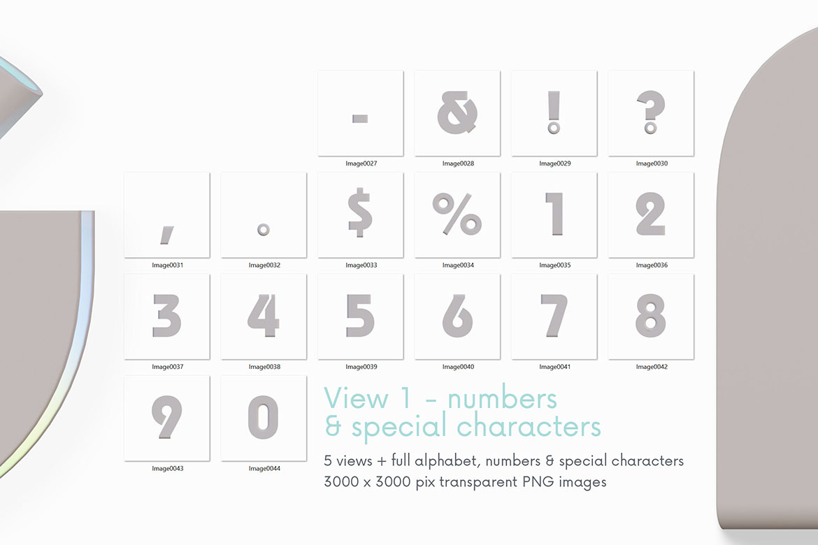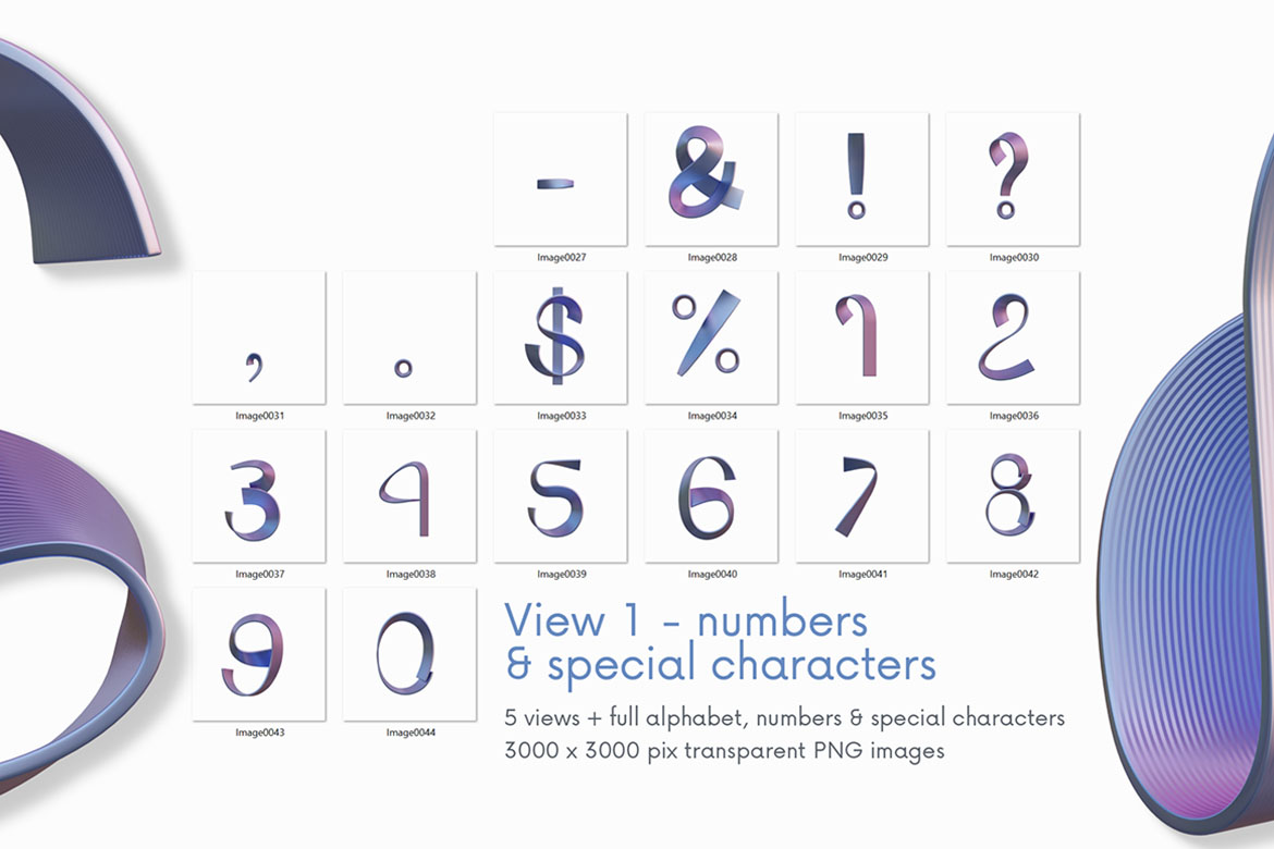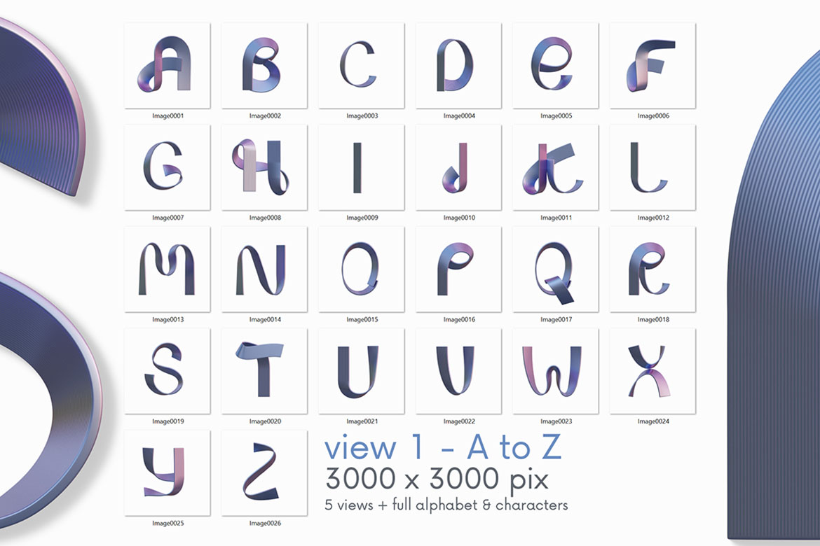 - 12 creative 3D lettering or alphabet image sets (transparent PNG images)