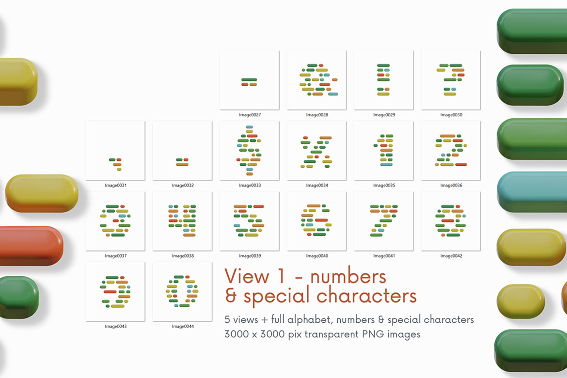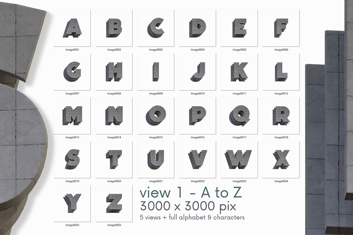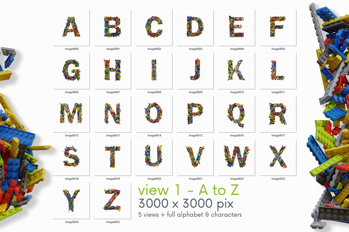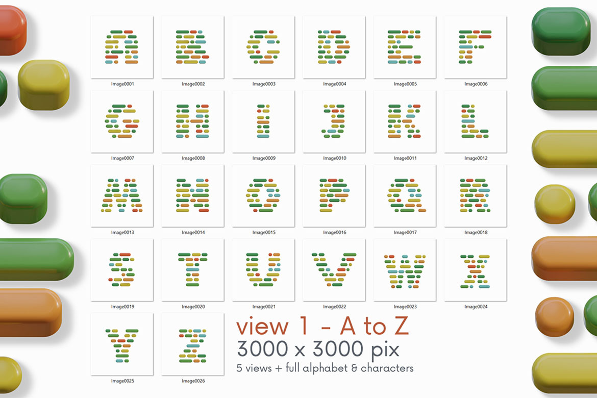 - 12 creative 3D lettering or alphabet image sets (transparent PNG images)