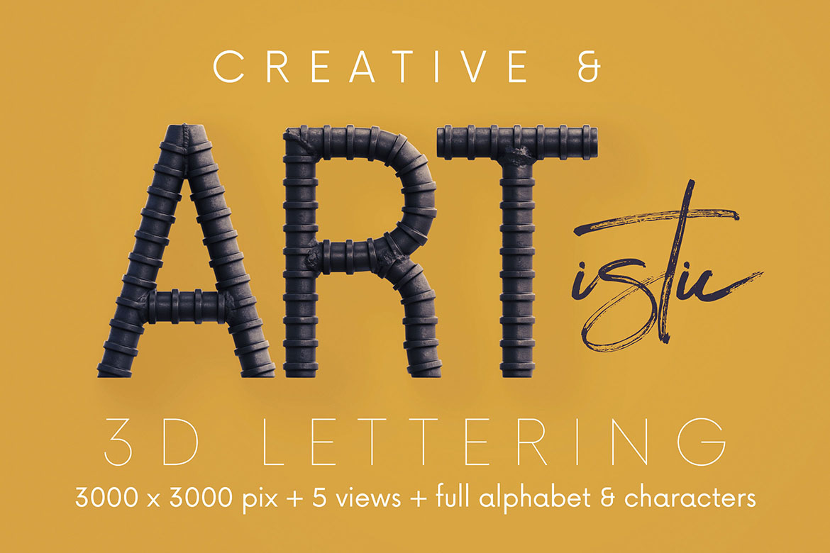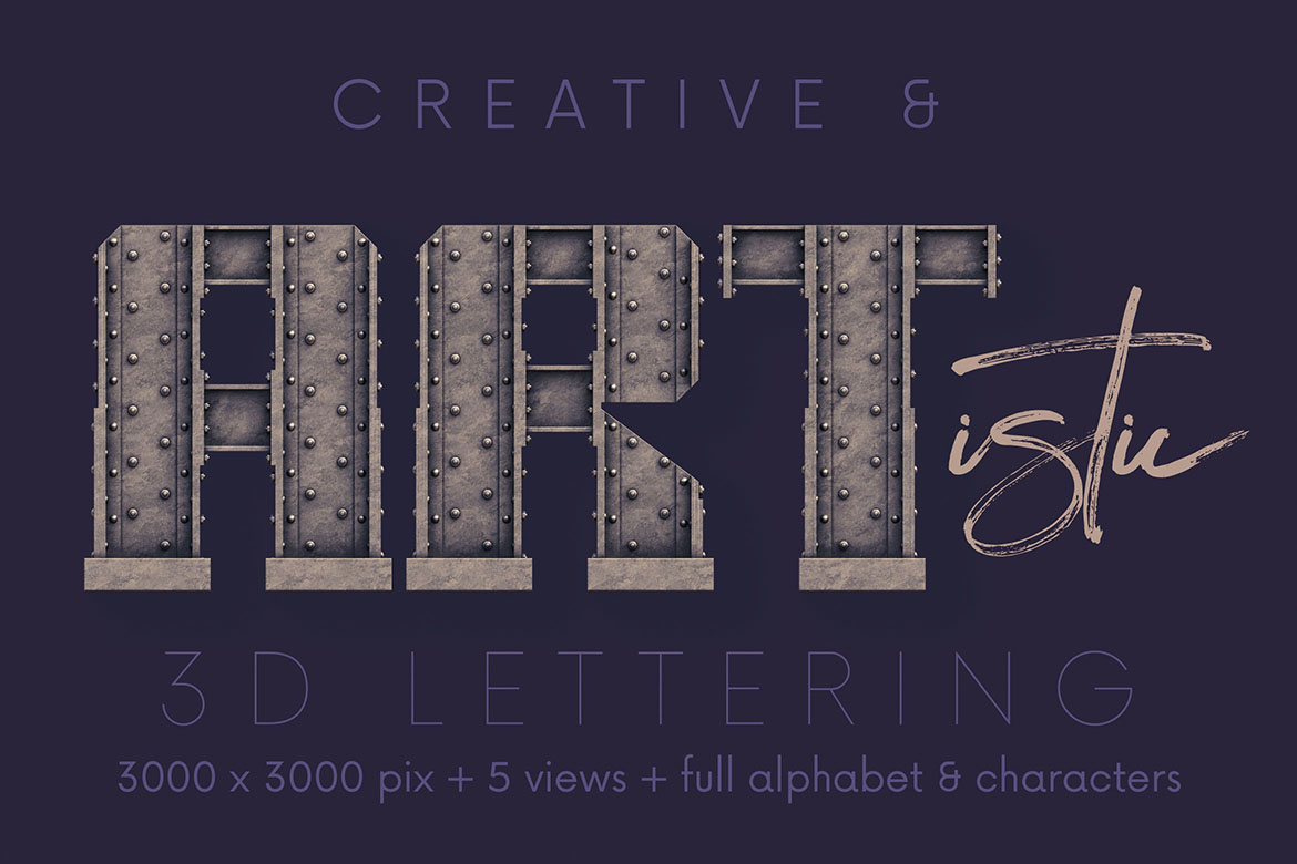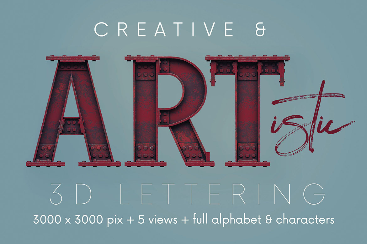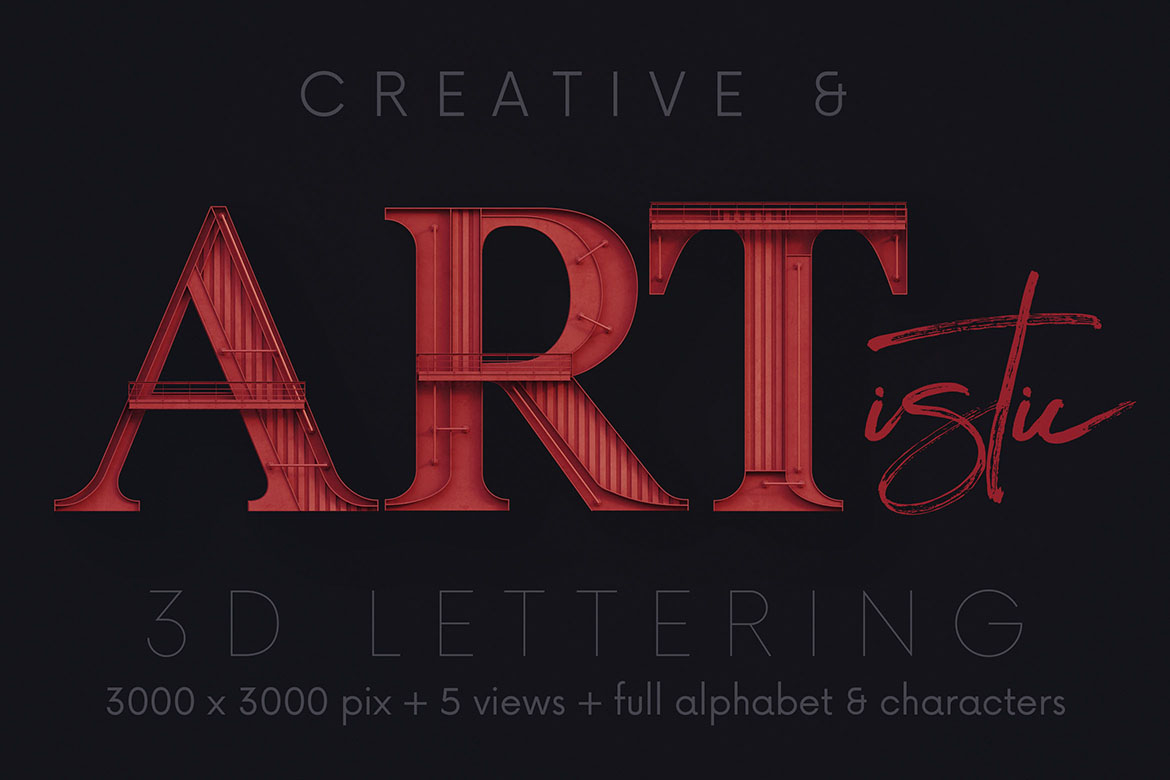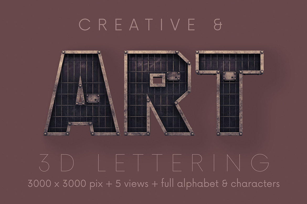 - 12 creative 3D lettering sets (transparent PNG) – all with creative, industrial & urban theme 🙂