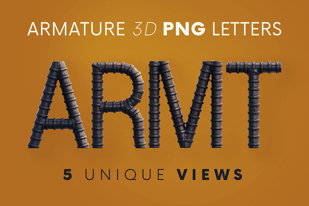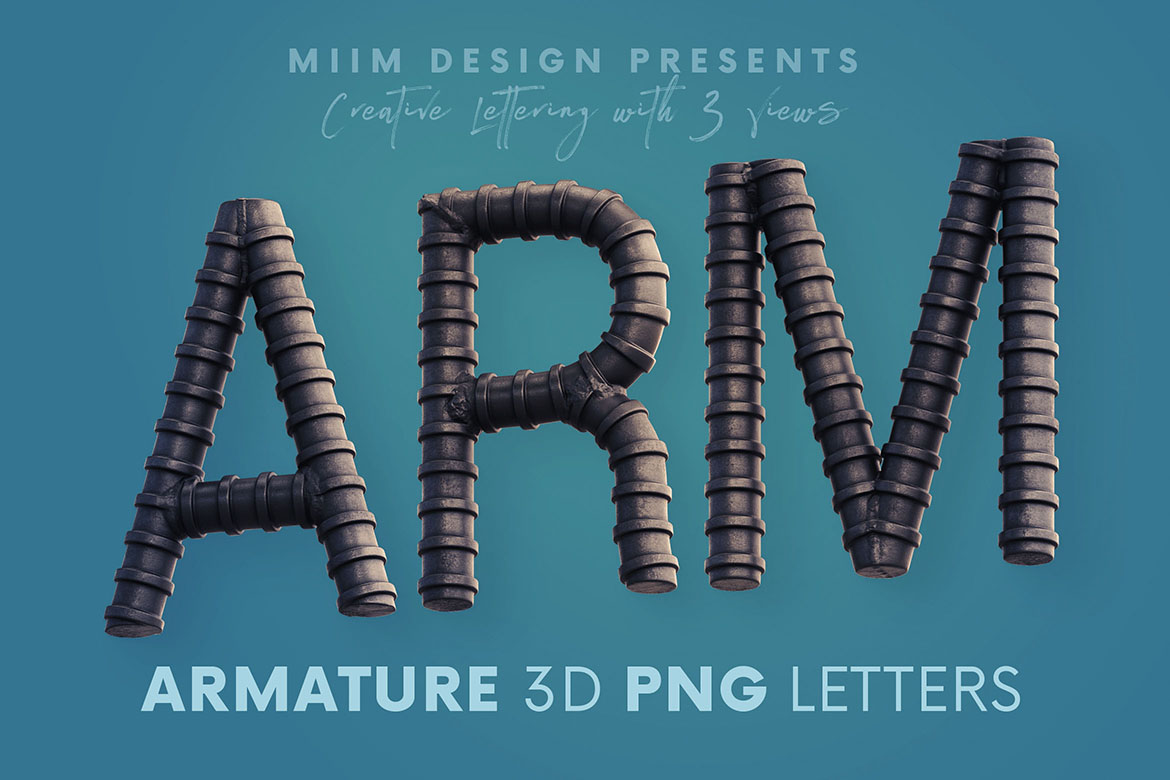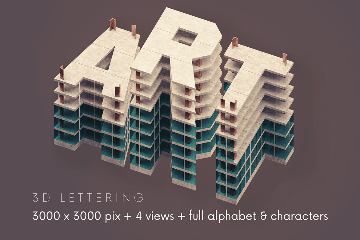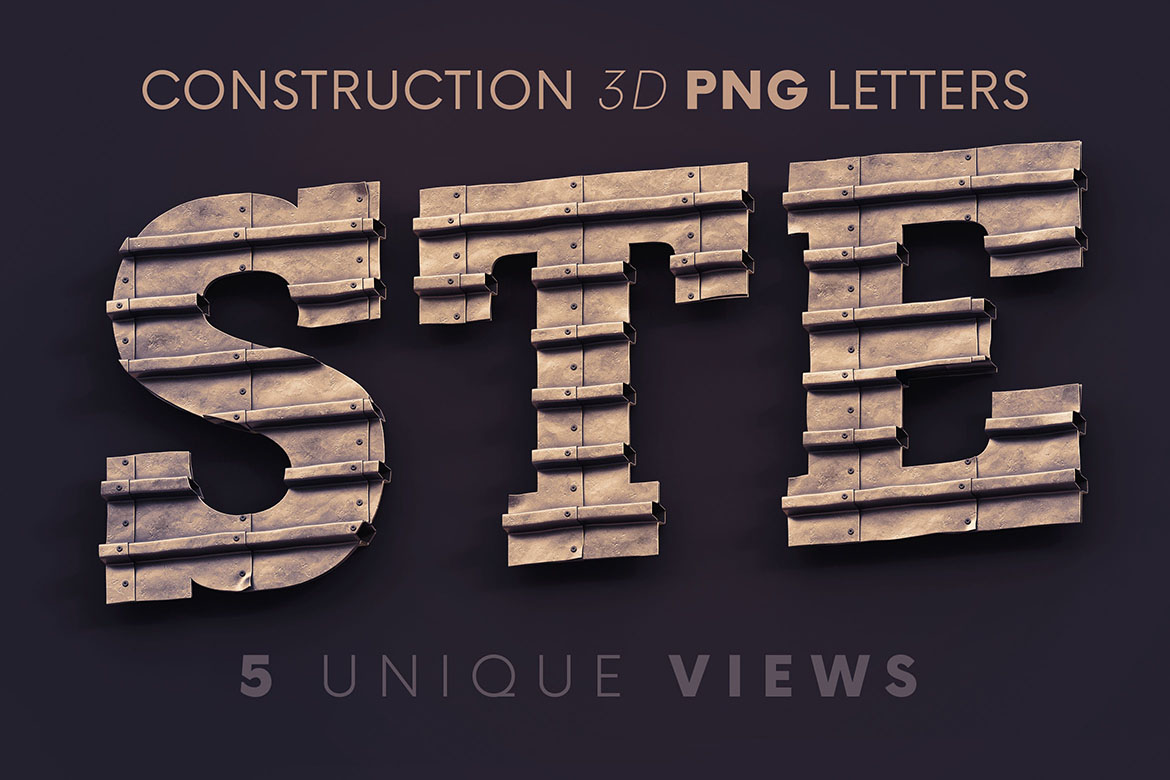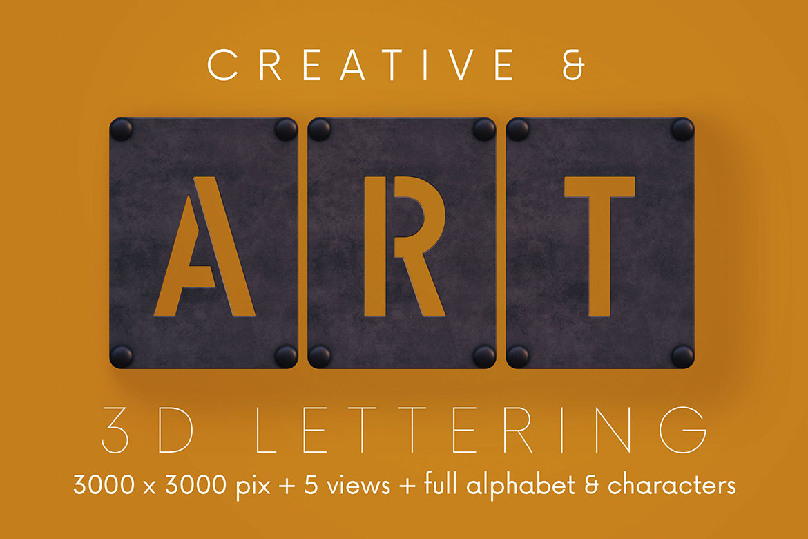 - 12 creative 3D lettering sets (transparent PNG) – all with creative, industrial & urban theme 🙂