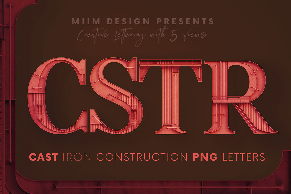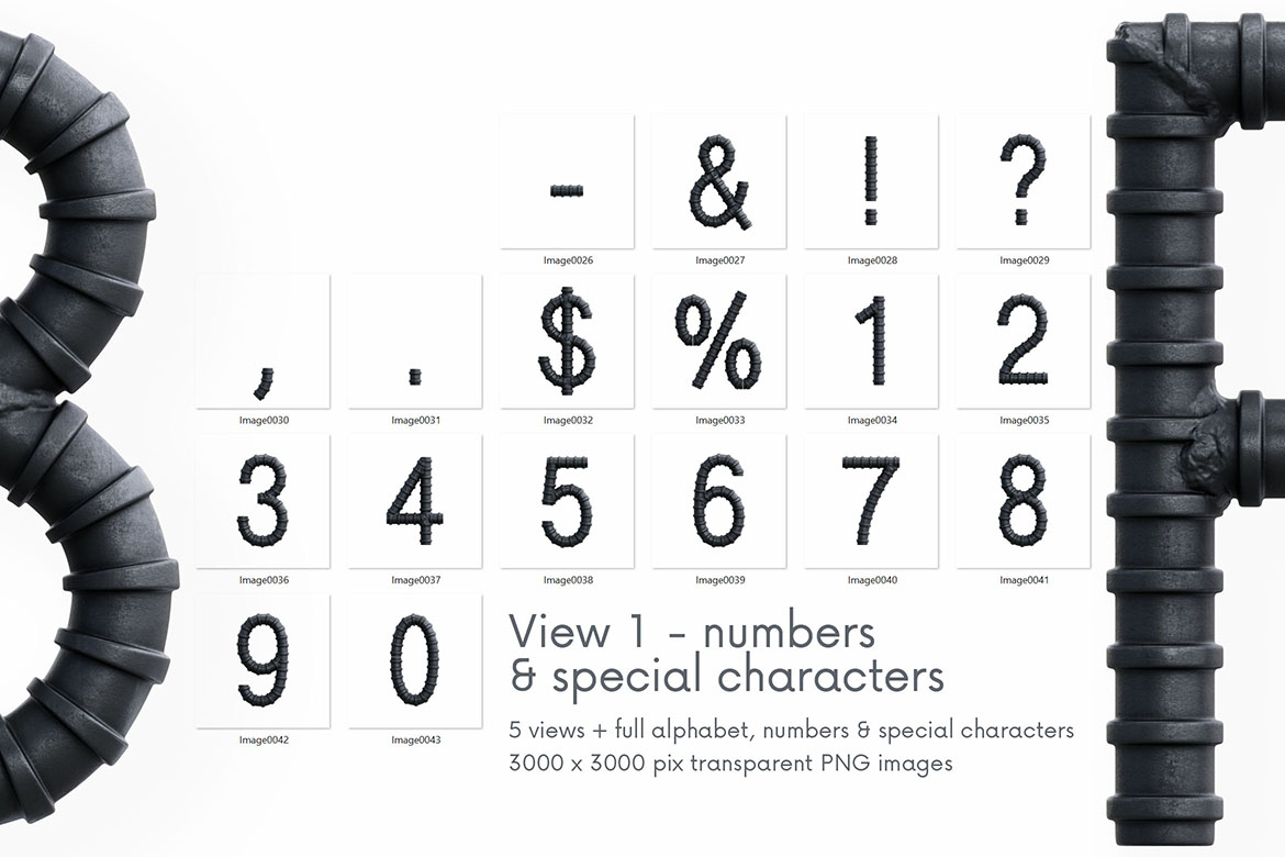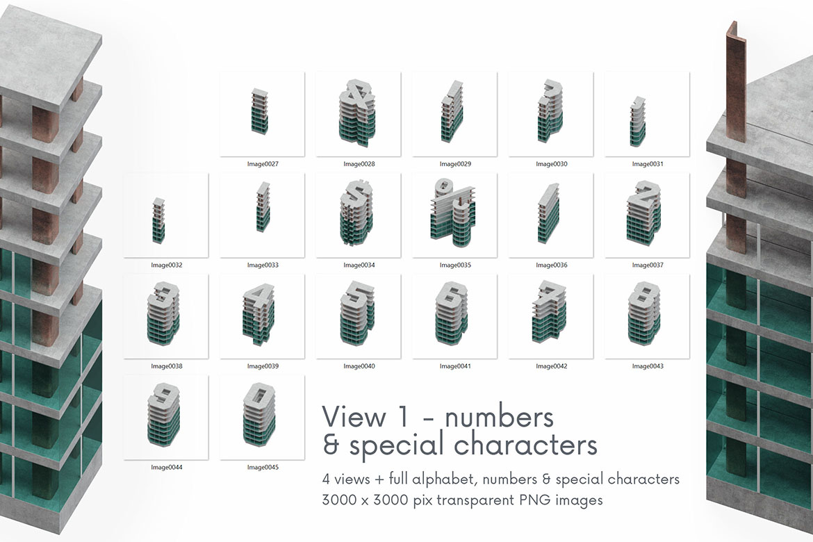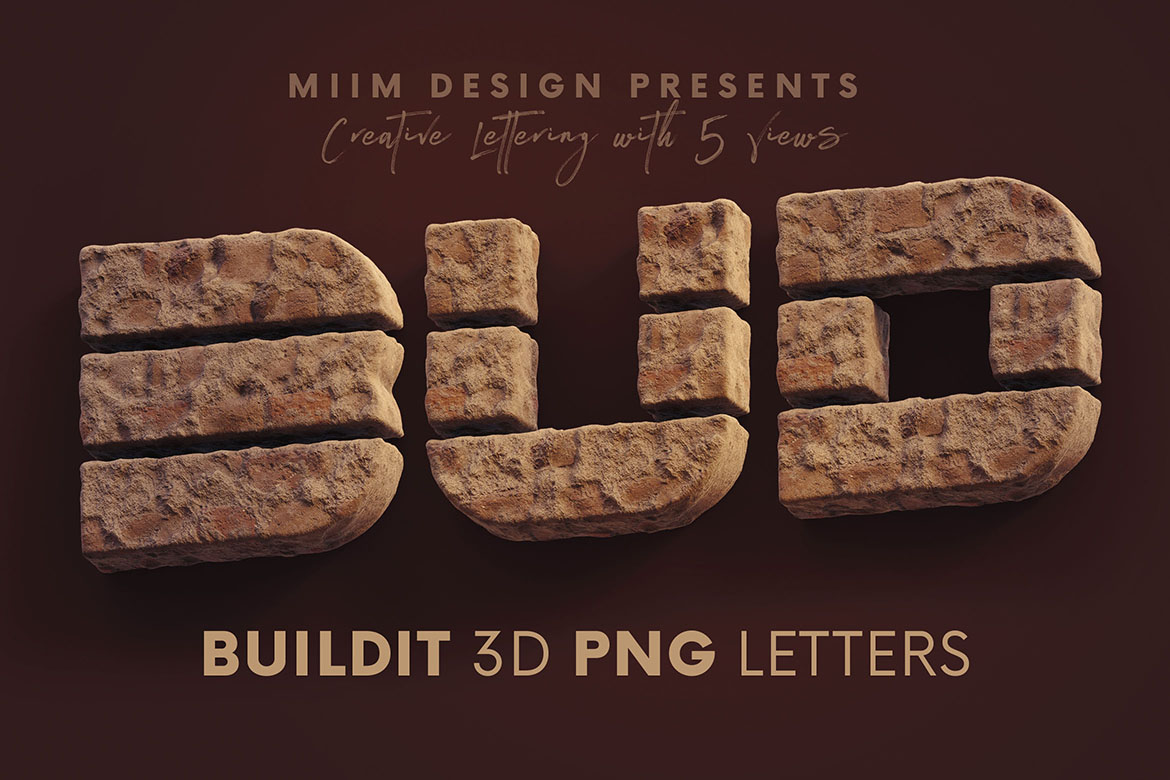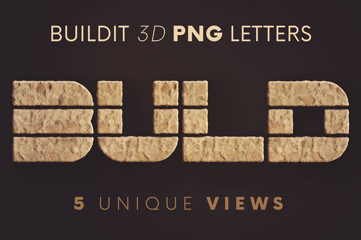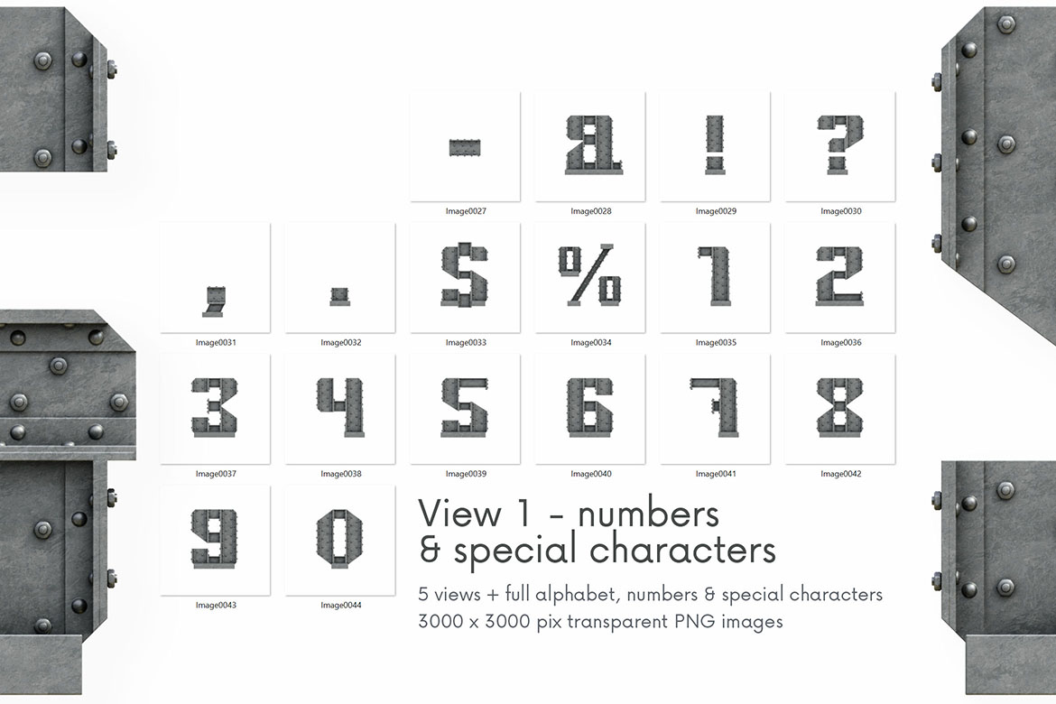 - 12 creative 3D lettering sets (transparent PNG) – all with creative, industrial & urban theme 🙂