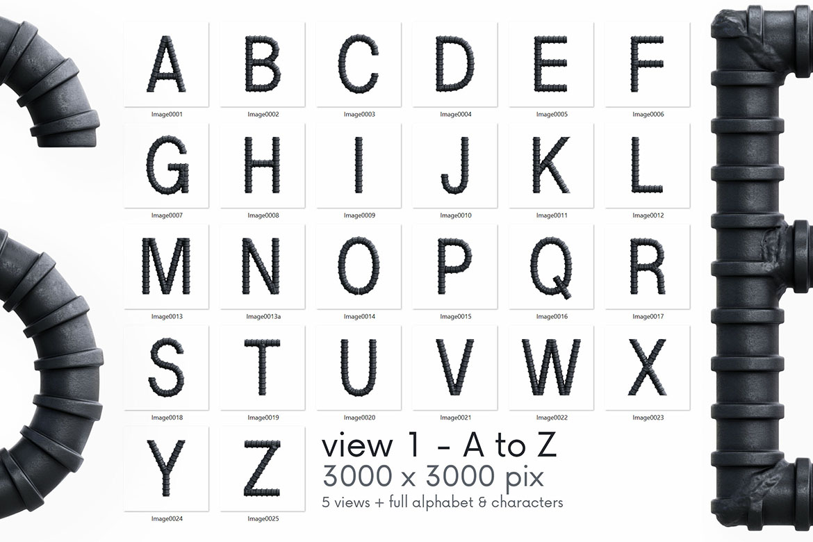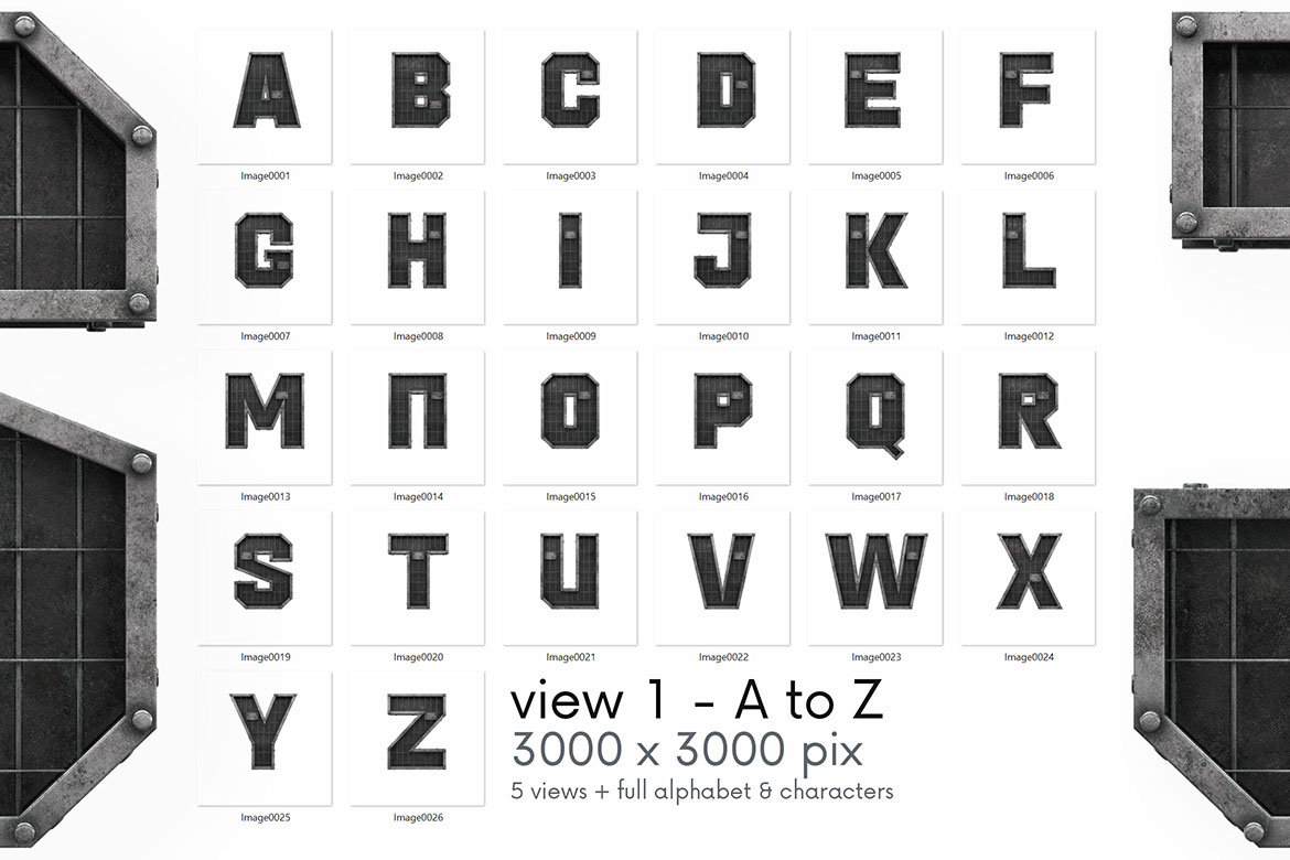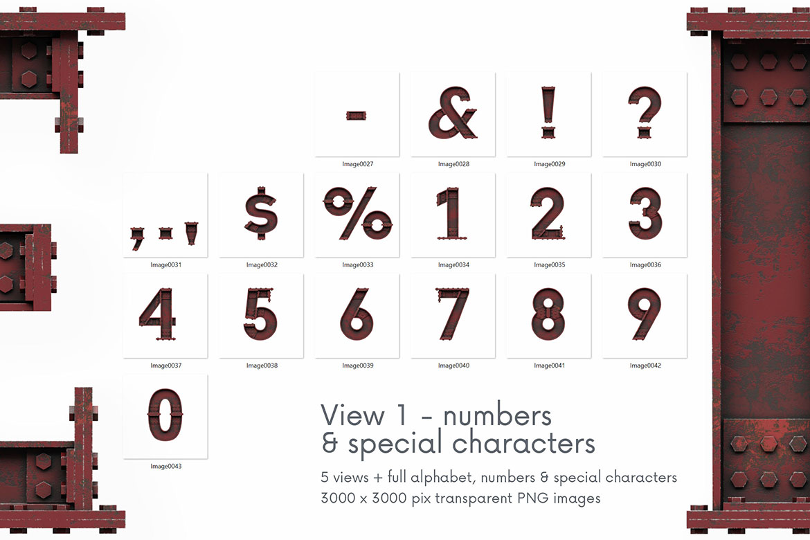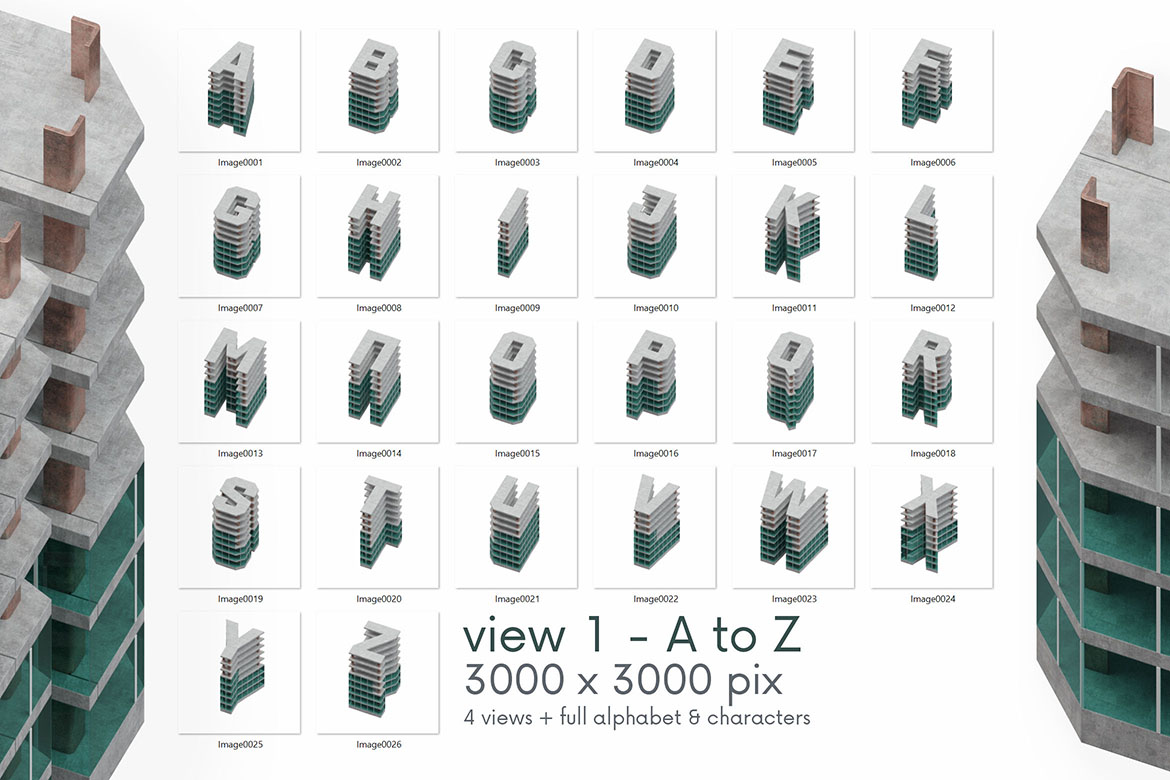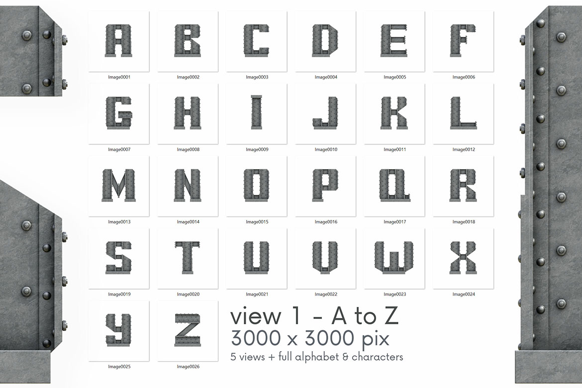 - 12 creative 3D lettering sets (transparent PNG) – all with creative, industrial & urban theme 🙂