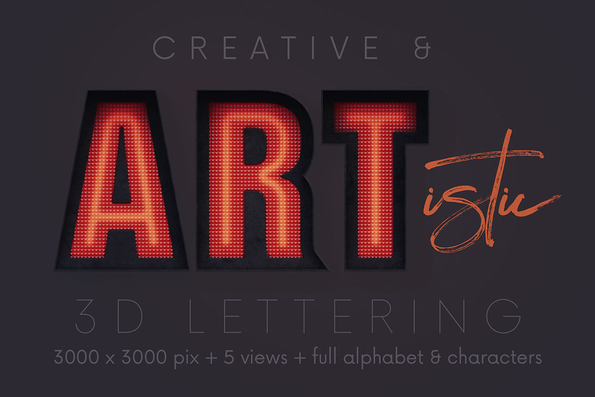 Brand new and super creative 3D typography bundle – volume 5 with 12 new lettering sets with various views. All are great for any print or web projects, so maybe it’s time to add something creative and unique to your typography toolbox 😉